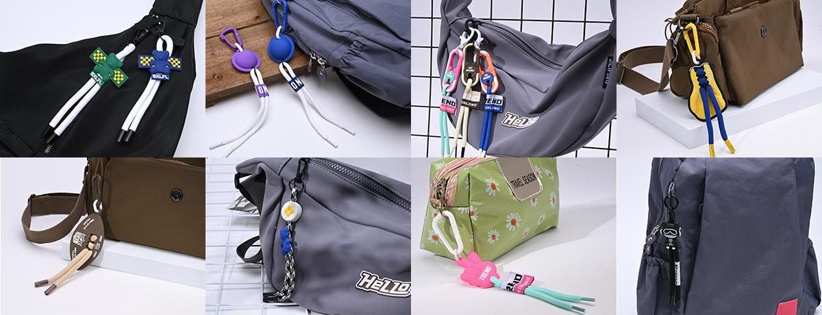 We provide a modular selection: rope cords, PVC/silicone tags, and zipper puller. Choose from regular designs (often in stock) or request light customization such as color/logo and set matching.