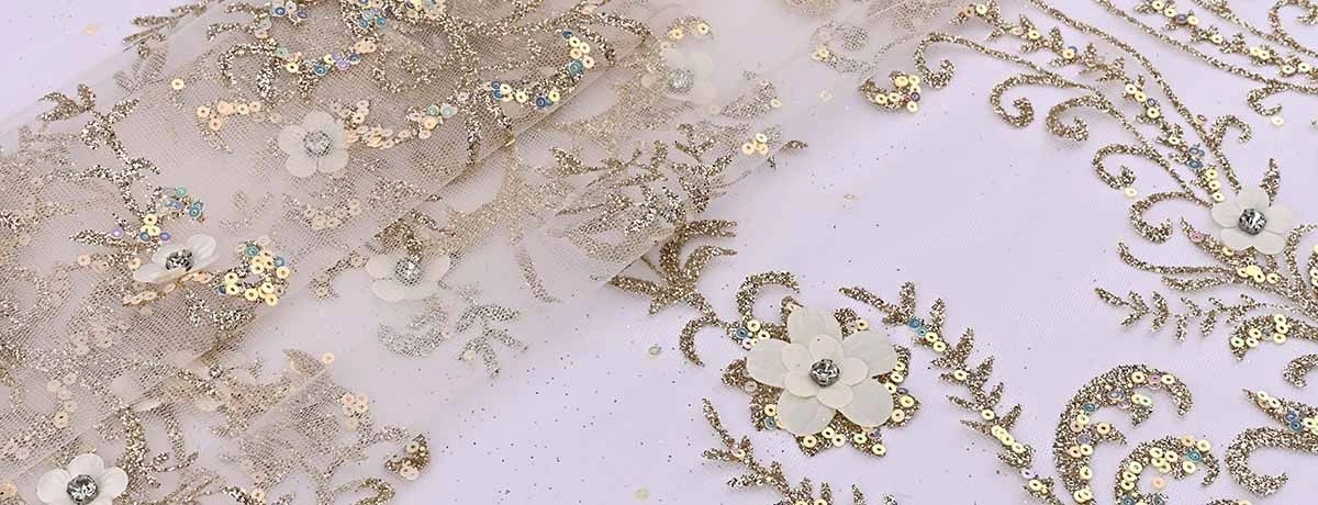 MH typically requires a minimum order quantity (MOQ), the least amount of fabric you can order from a supplier. Beaded gold fabric is often sold by the yard, allowing you to order the exact length needed for your dressmaking or craft projects.