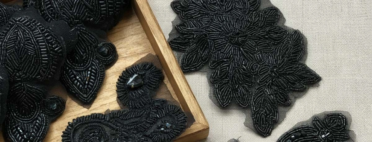Black beaded appliques add sophistication and glamour to both fashion and home decor, making simple items look luxurious.