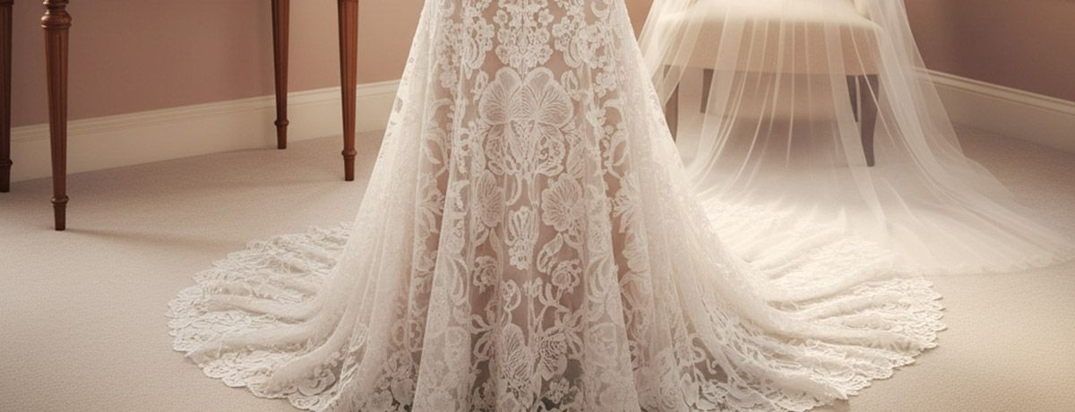 Chantilly lace: Built on fine tulle ground; lightweight, delicate, and soft-draping; more prone to snags; suited for romantic overlays and veils rather than structural elements