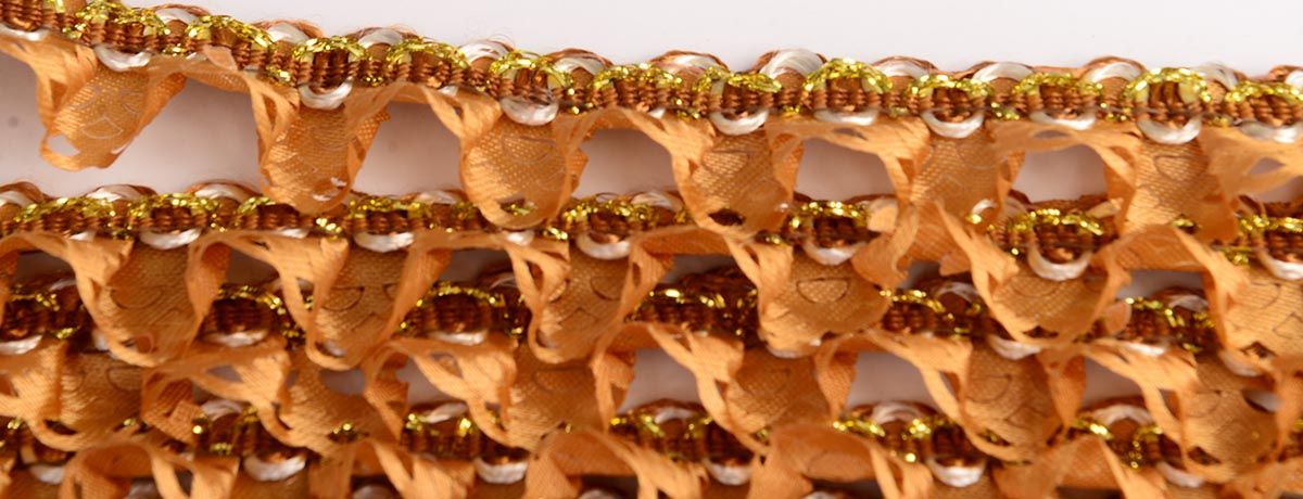 Ideal for decorative borders on clothing, lampshades, and furniture upholstery.