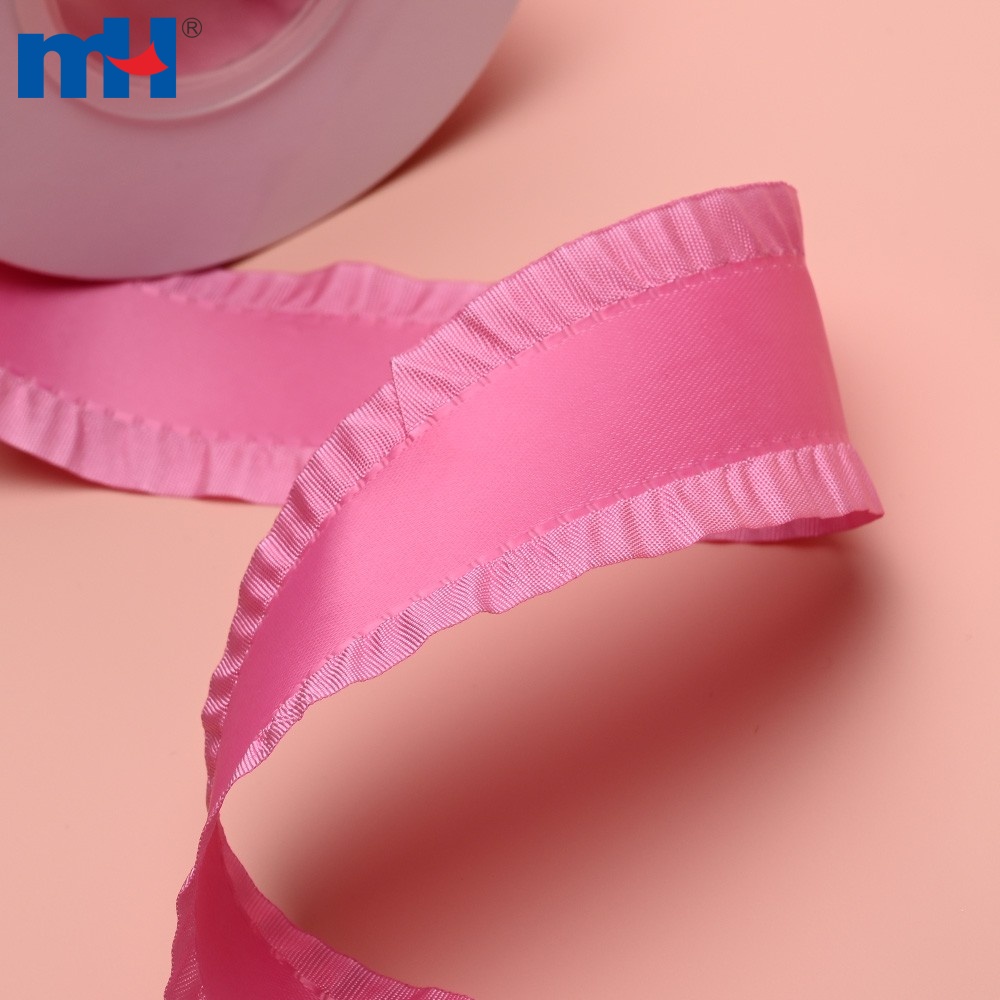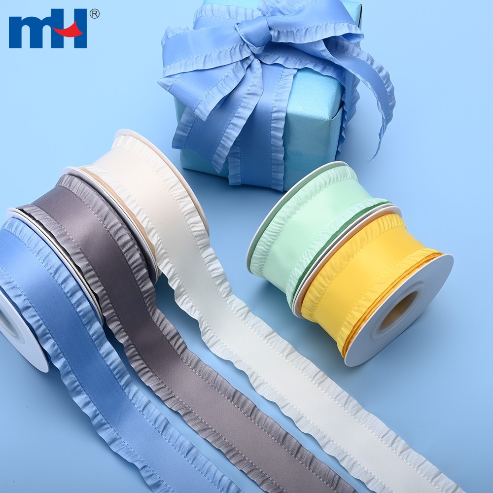 Ruffled Satin Ribbon is a decorative ribbon characterized by its ruffled or wavy edges, resembling the natural shape of lotus leaves. T