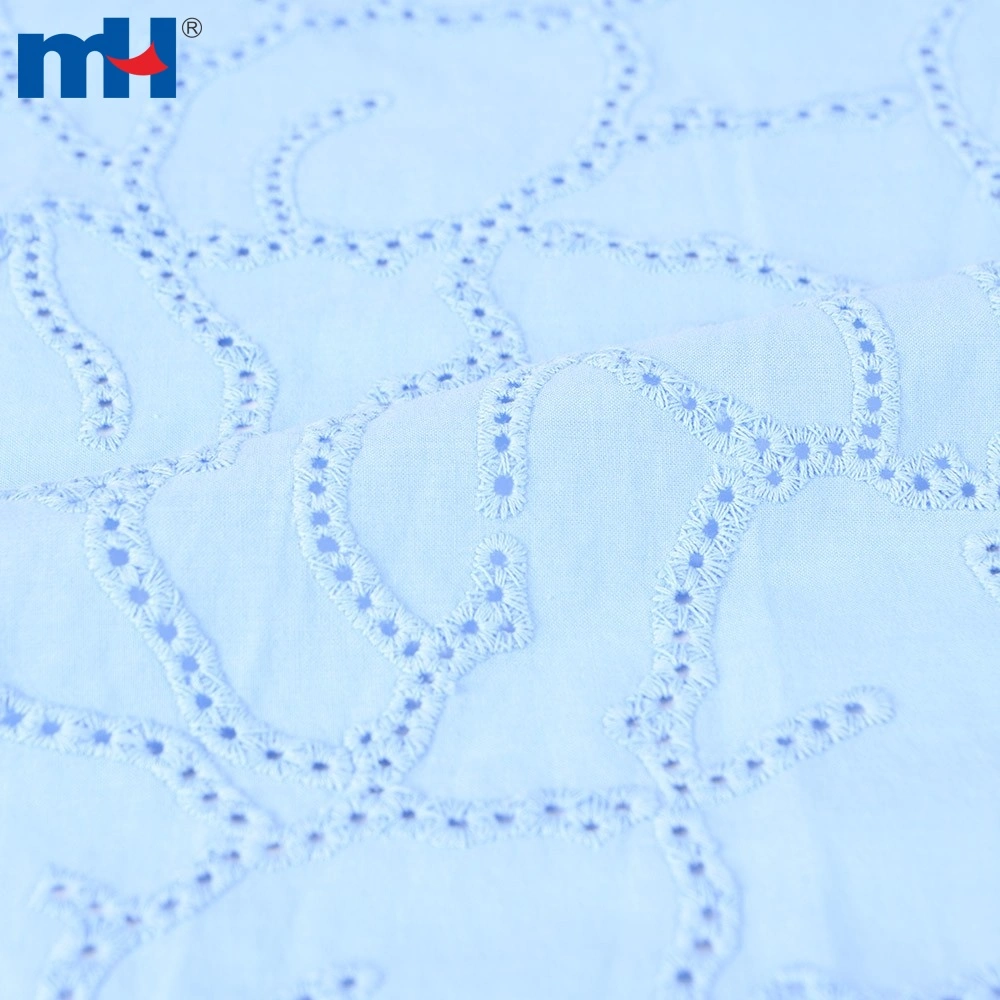 Colors include blue and white embroidered with eyelets and leaves
