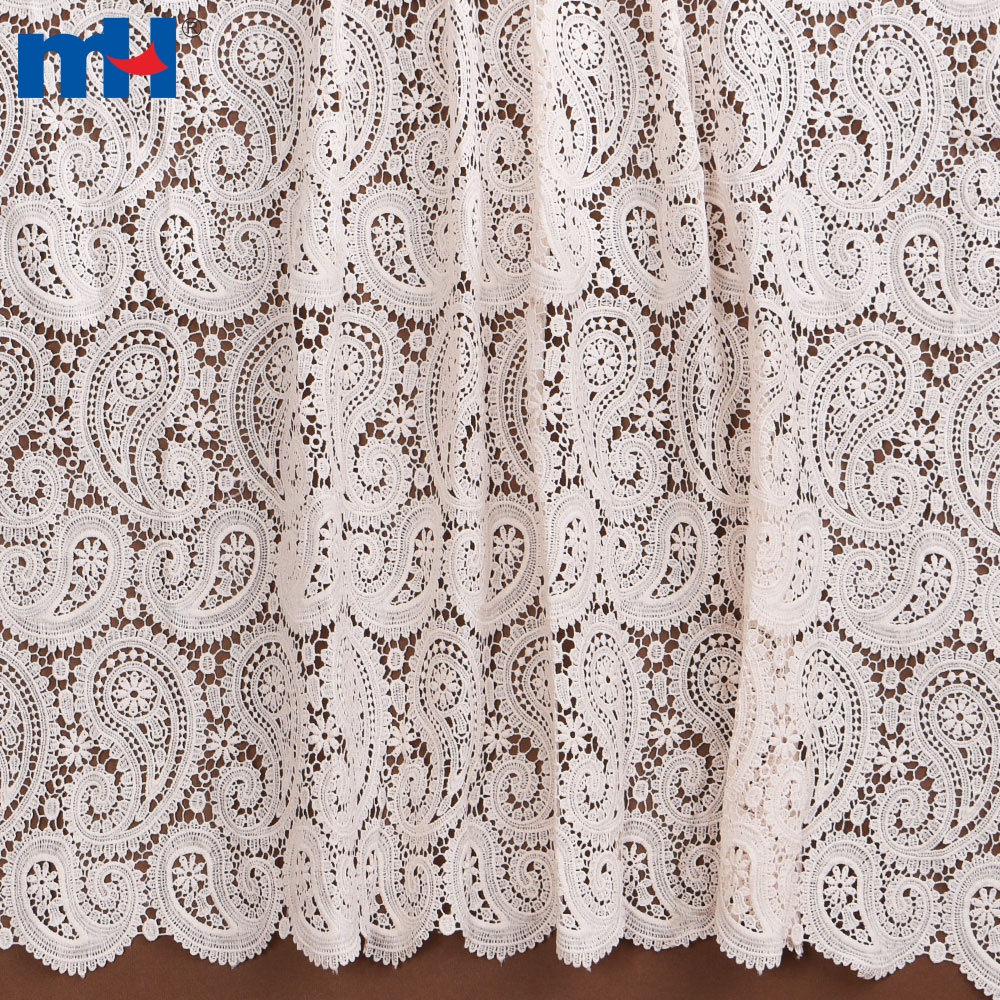 Floral paisley guipure lace with a scalloped edge on both ends