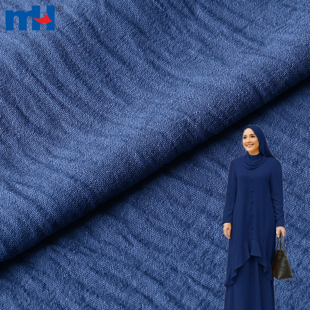 The soft crinkled texture adds a natural drape and depth, making it ideal for abaya, jilbab, hijab, tunic, and other modest wear. Its wrinkle-resistant quality ensures garments stay smooth and refined throughout the day, while the breathable polyester keeps wearers cool and comfortable even in warm climates.