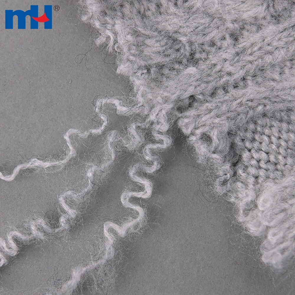 This yarn is made of brushed acrylic yarn twisted with spandex yarn and polyester filament. The brushed acrylic yarn keeps the fabric plump, light and fluffy, the spandex yarn and polyester filament keep the fabric high elastic and tenacity.