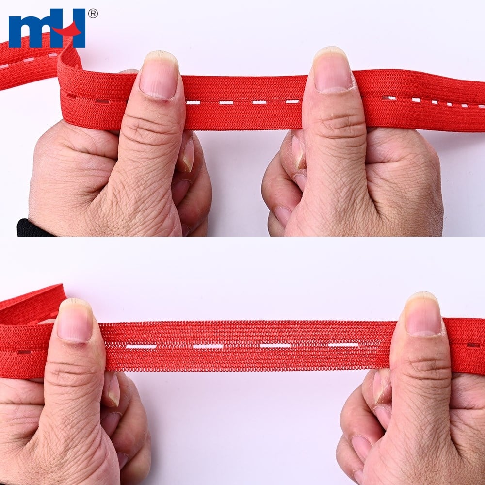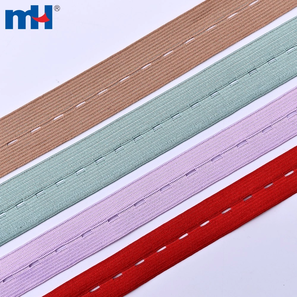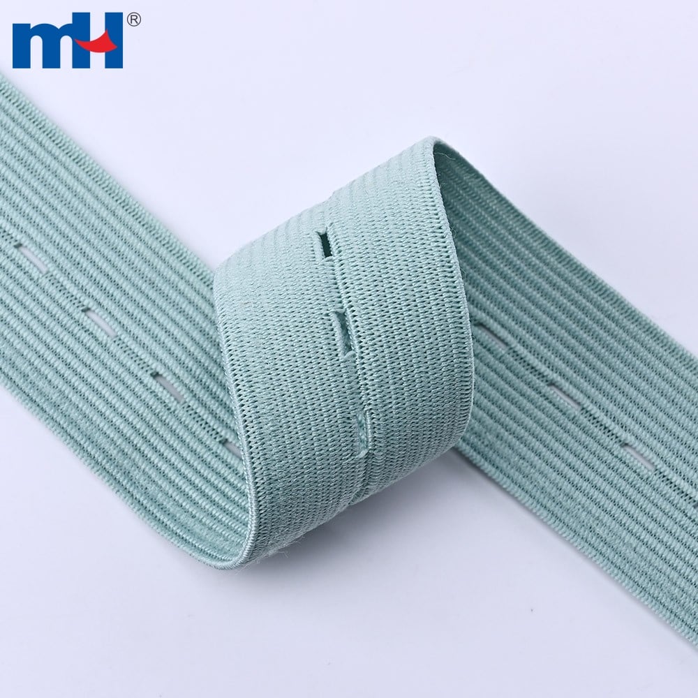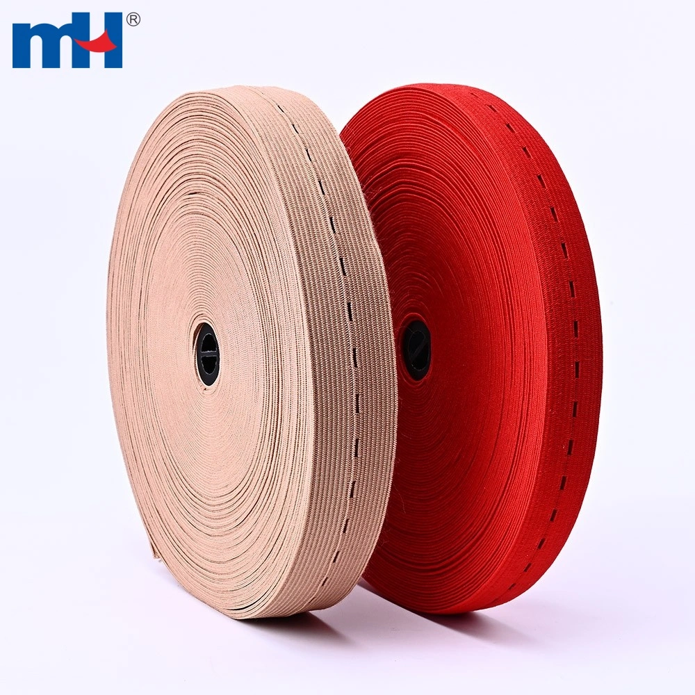 Its precisely cut, heat-sealed button openings allow for easy garment adjustments—ideal for creating adjustable waistbands, cuff closures, shirring details, and medical supports—while the tape’s tightly knitted structure resists fraying, maintains elasticity through repeated laundering, and ensures neat, professional results every time.