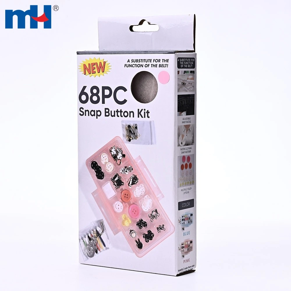 This 68-piece snap button and sewing repair kit provides a complete set of essential tools for fixing clothing fasteners, making minor sewing repairs, and adjusting garments. Neatly packed in a compact, transparent box, it’s ideal for home use, travel, office, or emergency wardrobe fixes.
