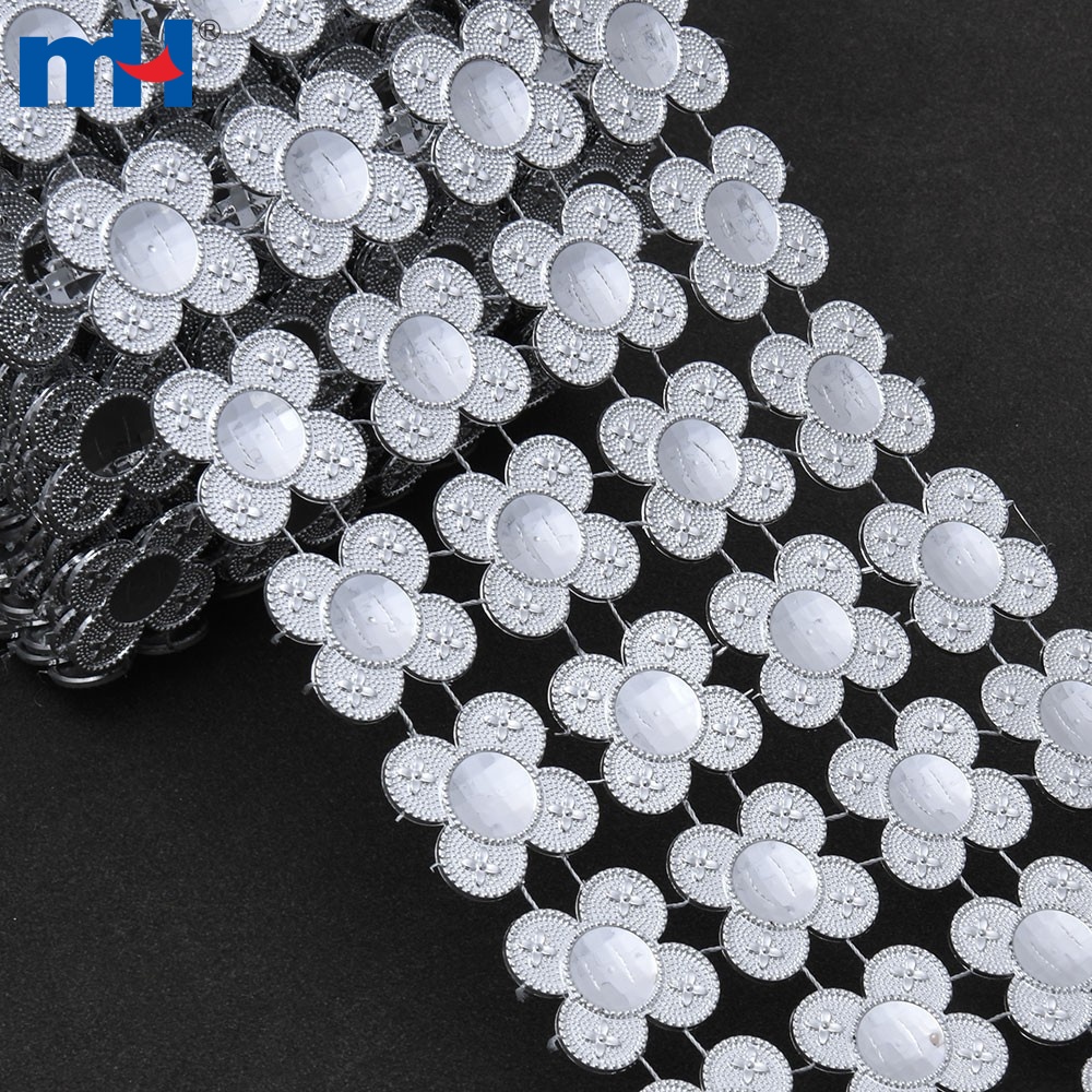 107mm diamond mesh wrap roll, 4 rows of rhinestones