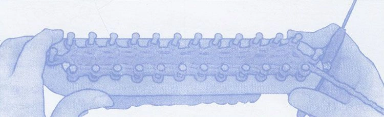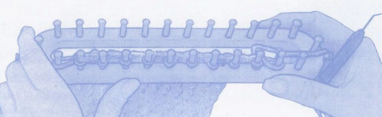 This long loom can be used to knit in three different methods. 1. Single knit |