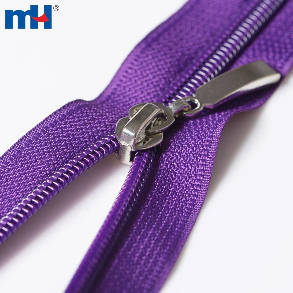 Two-way open-end zippers feature two sliders that can move independently along the zipper chain. This design allows the zipper to open or close from either end, providing flexibility and convenience. The zipper completely separates at the bottom, making it ideal for jackets, coats, and other garments.