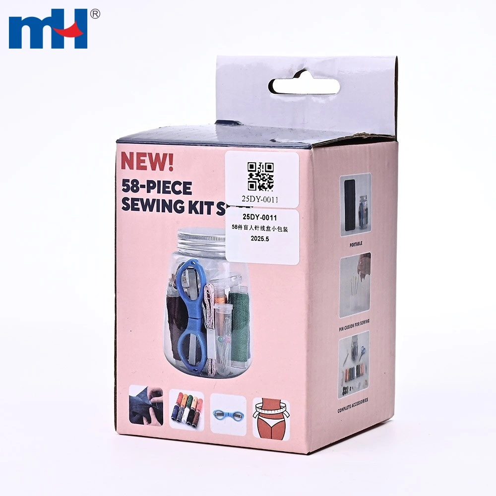 This 58-piece easy-thread sewing kit is specially designed for users who need more convenience when threading needles. Packed in a compact cylindrical box, it includes large-eye needles, essential sewing tools, and practical accessories for quick garment repairs at home or on the go.