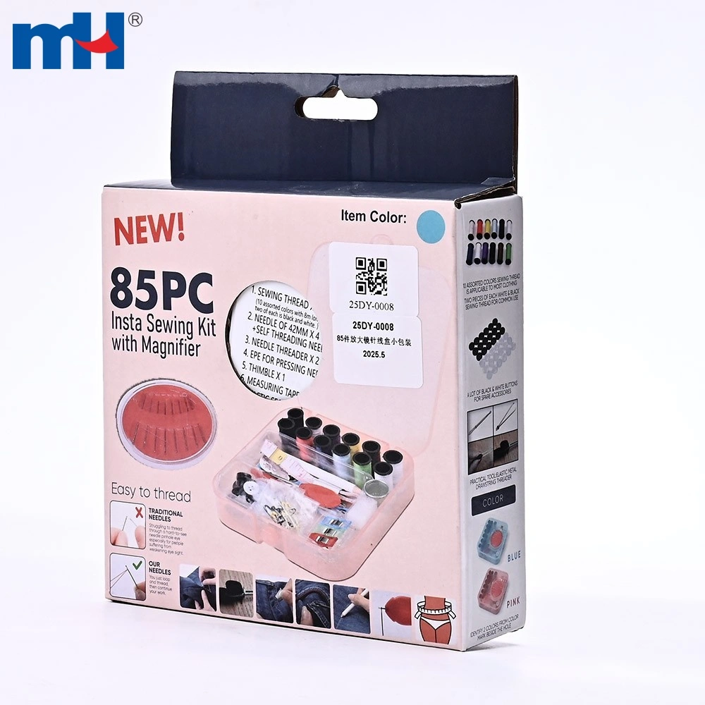 This 85-piece sewing kit with a built-in magnifier provides a complete set of tools for everyday garment repairs, detailed sewing tasks, and travel emergencies. Designed in a compact square box, it keeps all accessories neatly organized and easy to access.