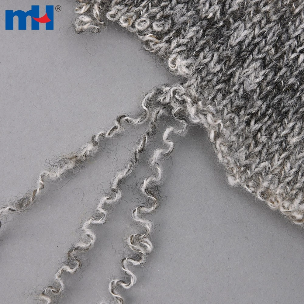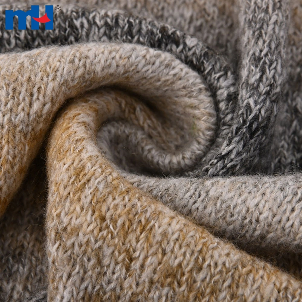 This yarn is composed of sectional dyed acrylic yarn, polyester DTY and cotton yarn. Sectional dyed brushed acrylic yarn keeps the fabric warm, fluffy and comfortable. The polyester and cotton yarn keep the fabric skin-friendly.