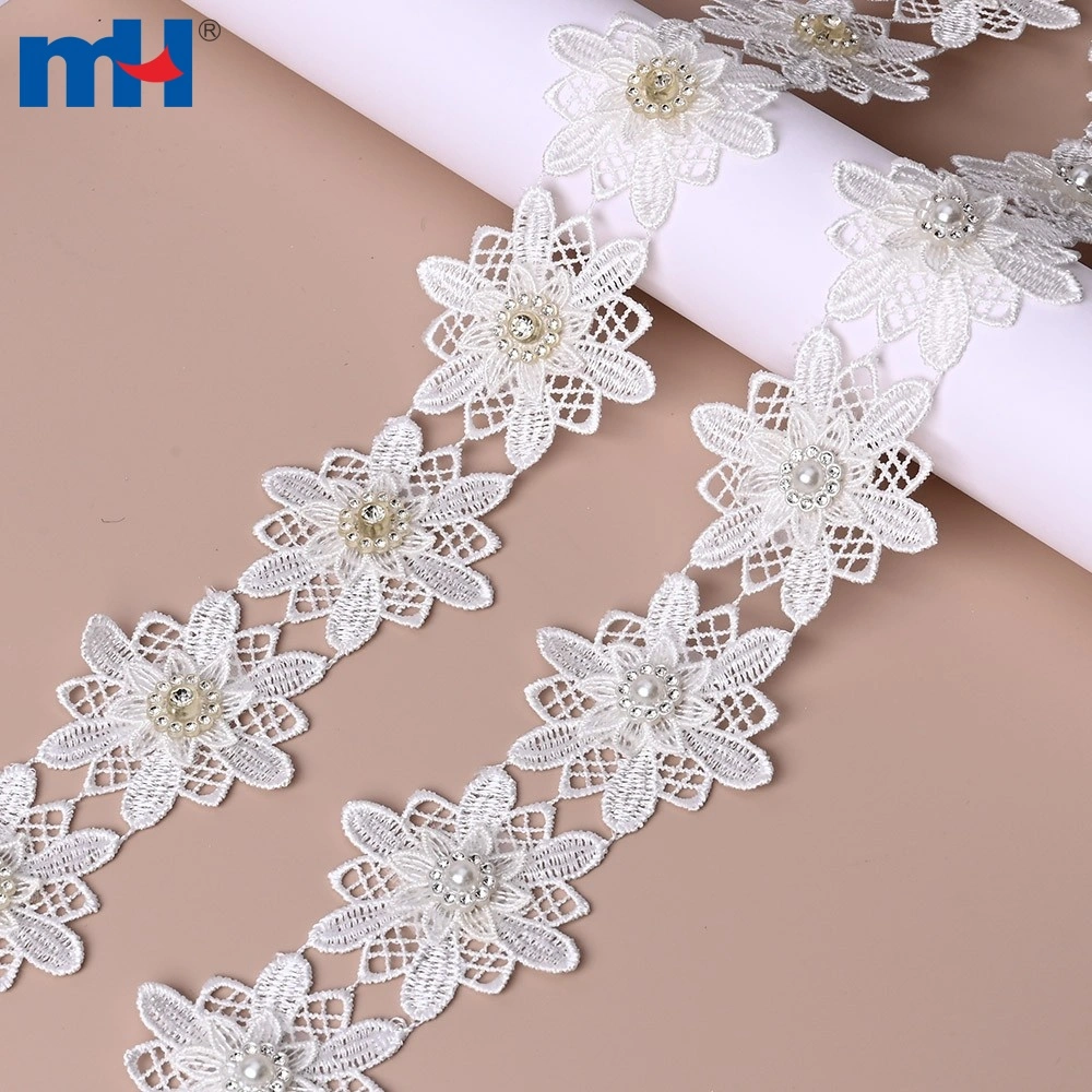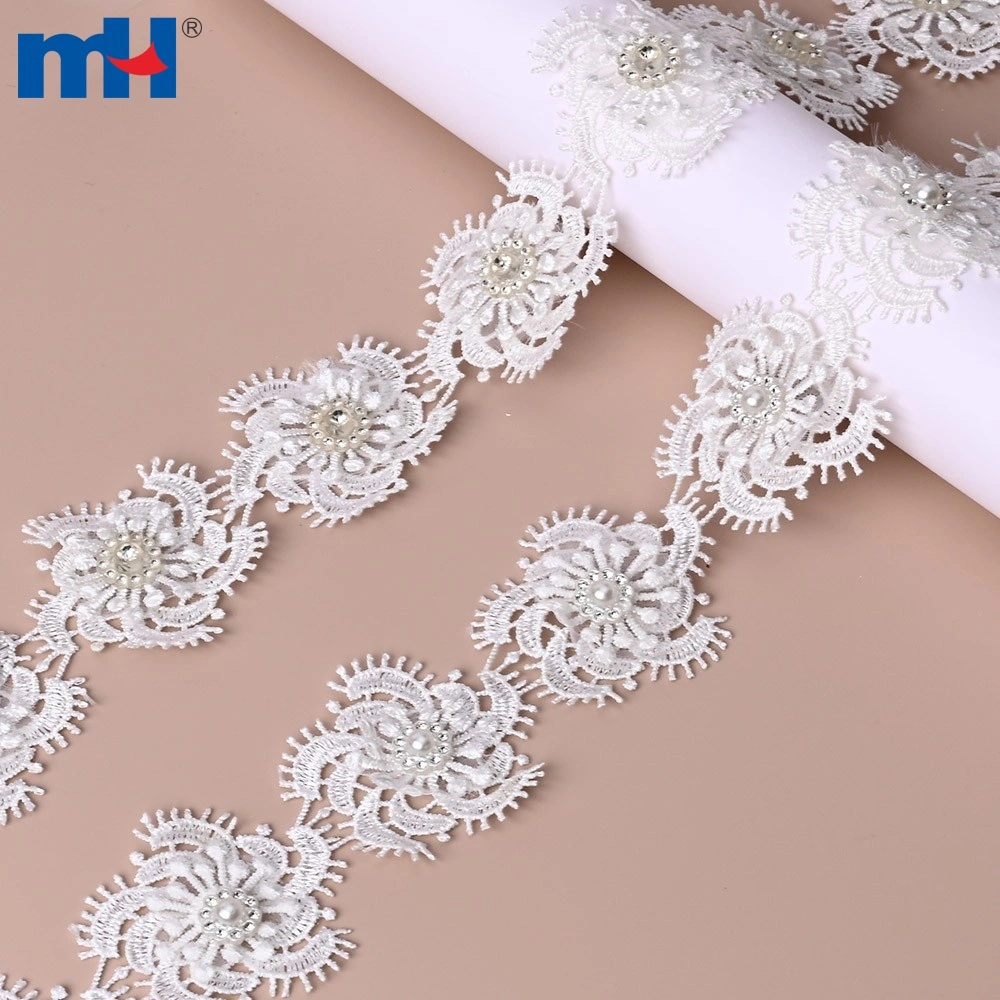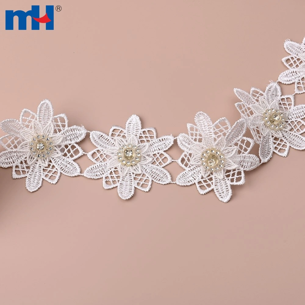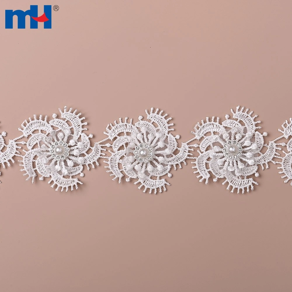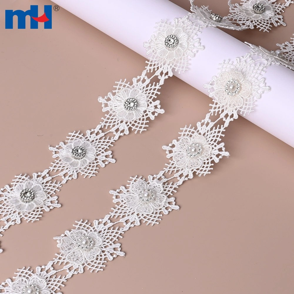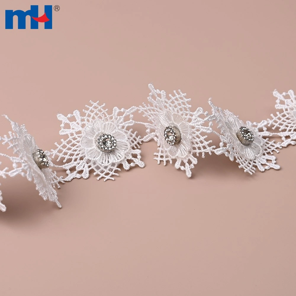 Water-soluble Chemical Lace Trimming with Rhinestone