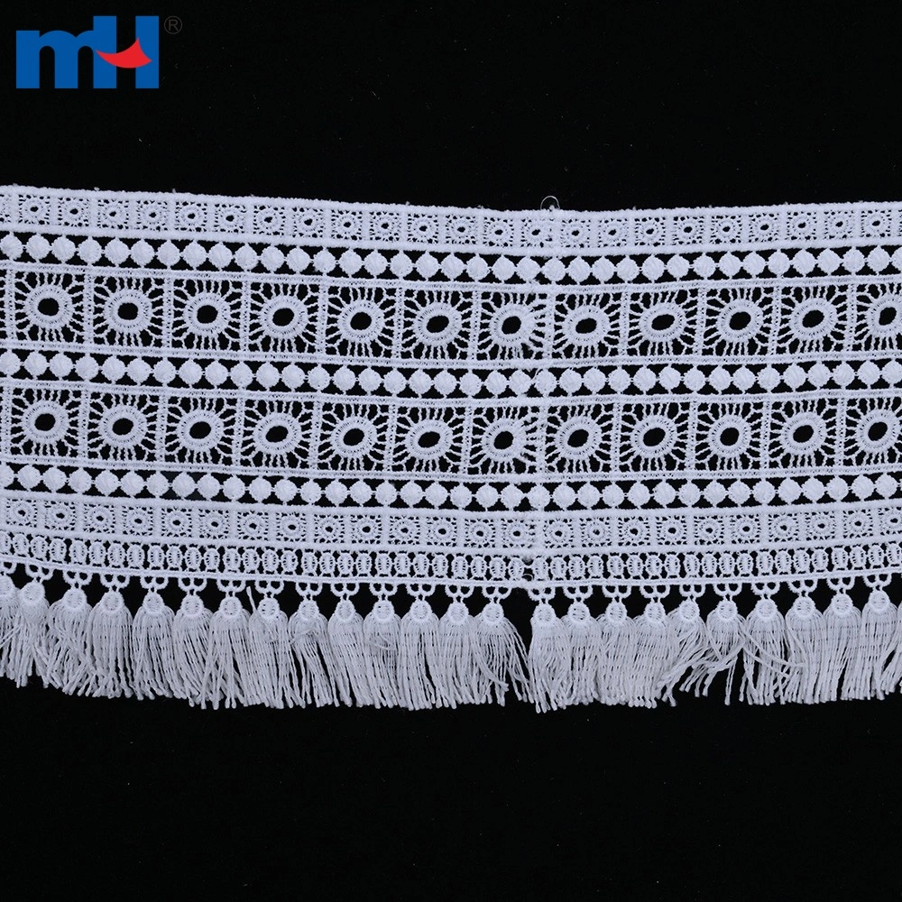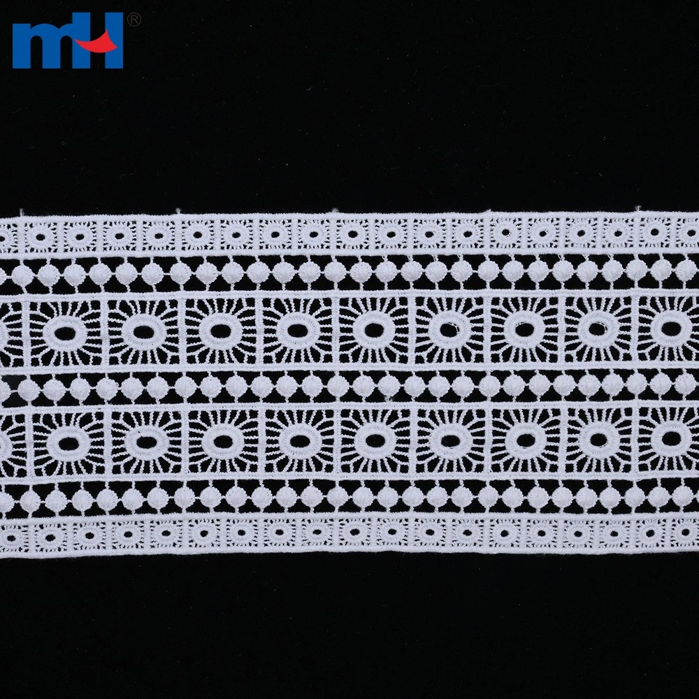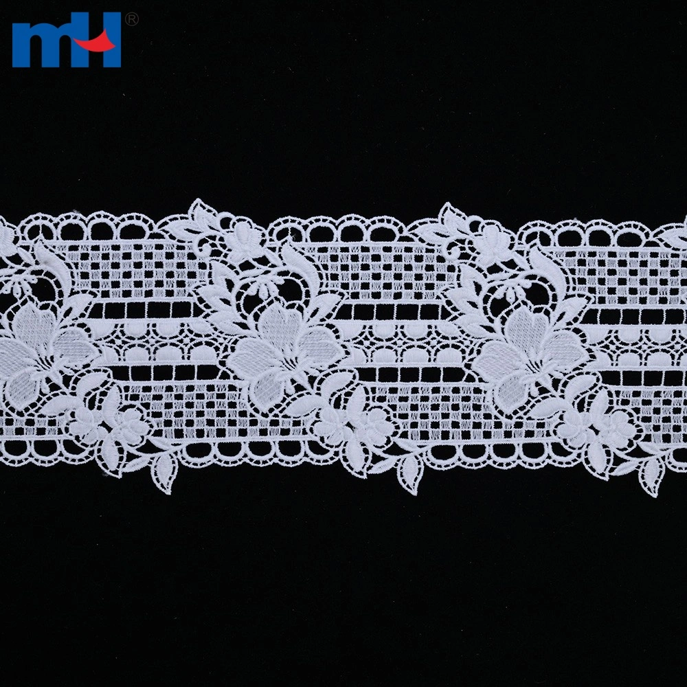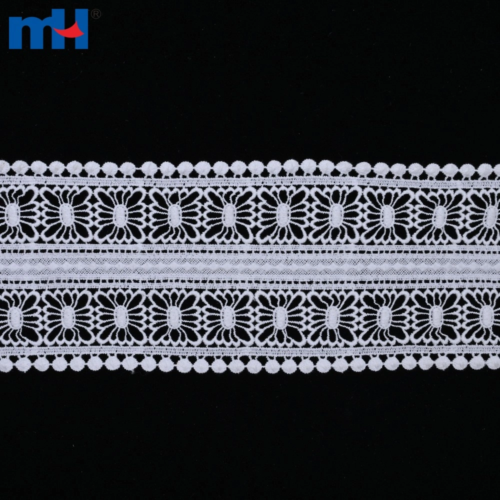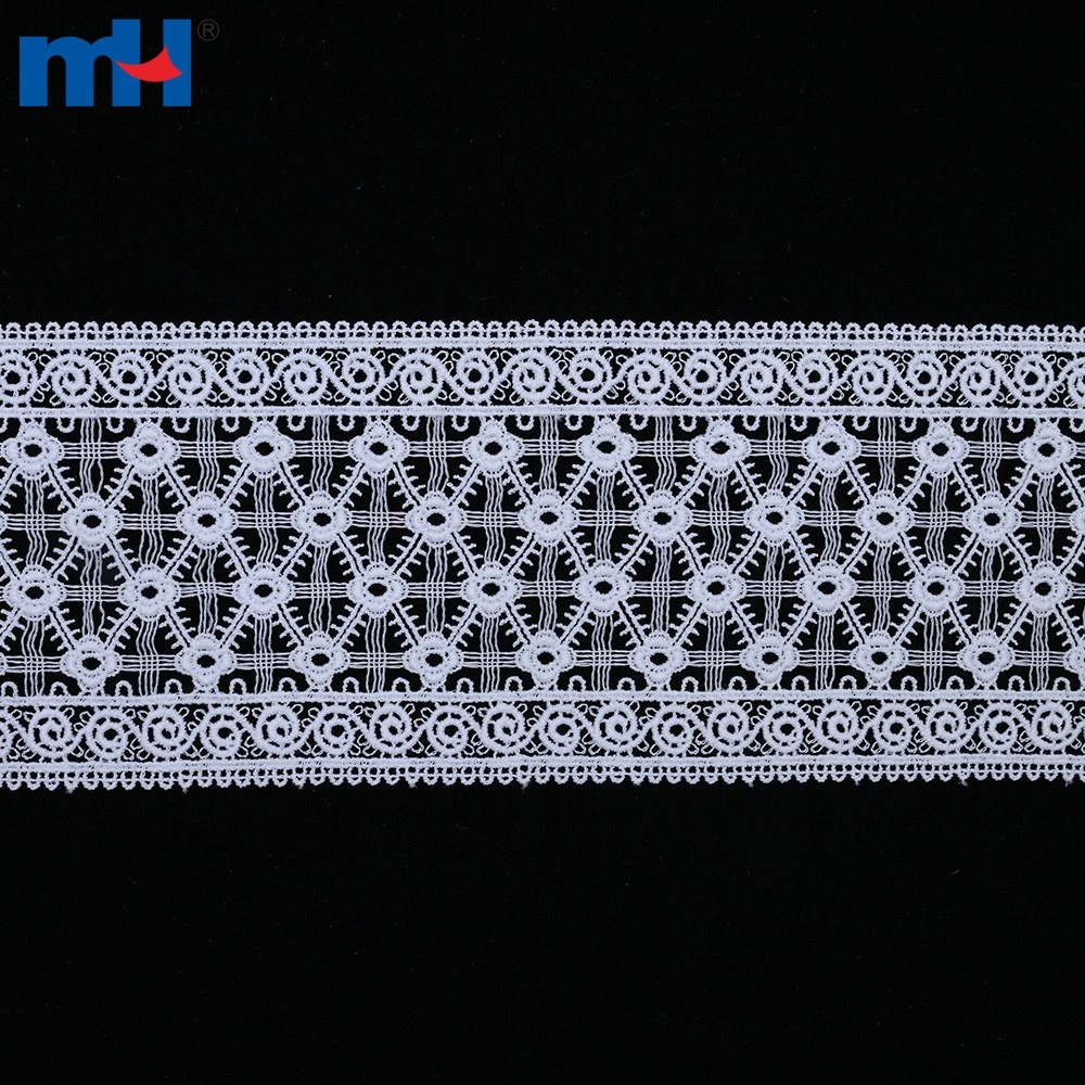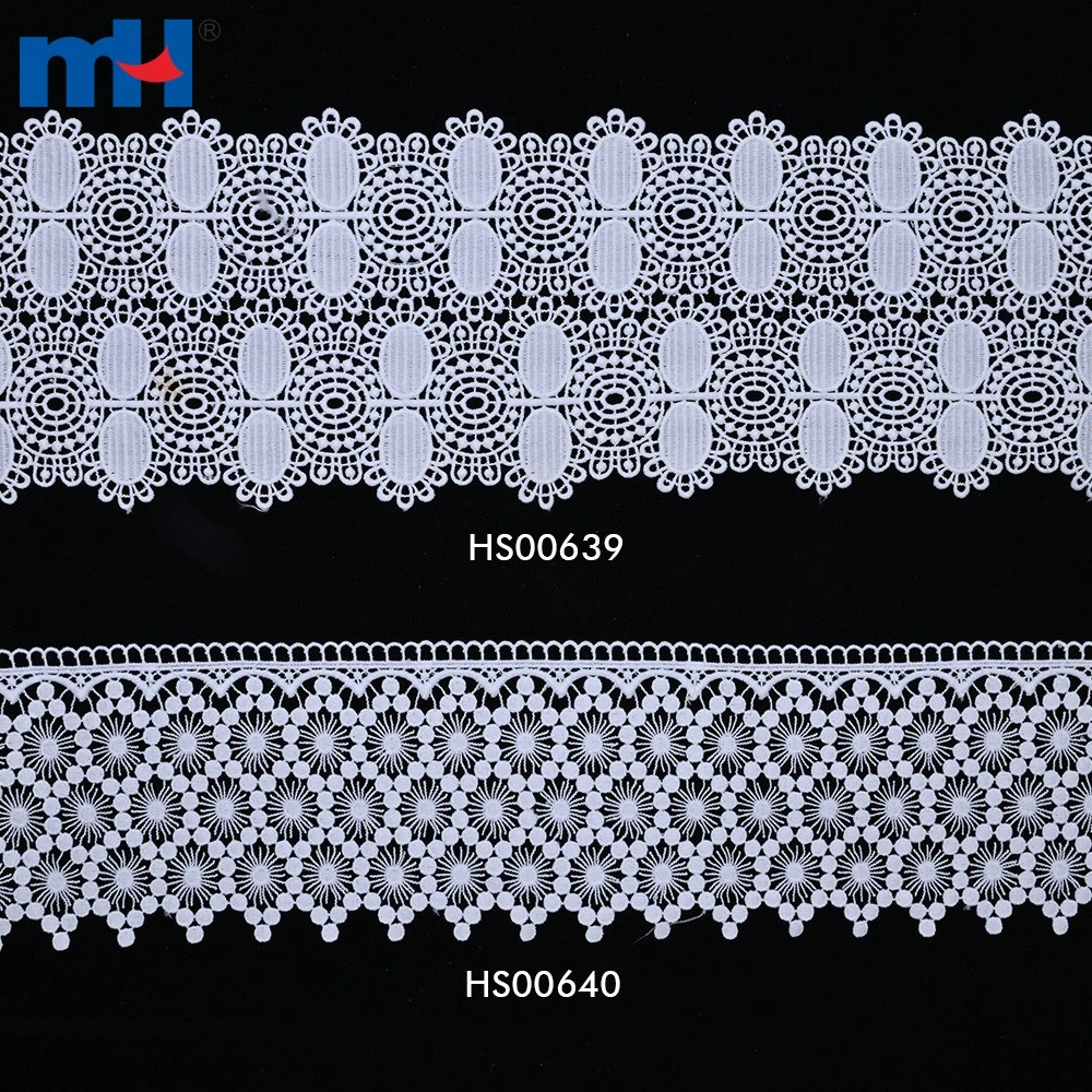 MH lace trim collection features a variety of delicately woven patterns made from high-quality polyester or cotton materials. Each design showcases intricate geometric, floral, and scalloped motifs, offering a perfect blend of elegance and versatility. The trims are soft yet durable, with fine texture and consistent edges, suitable for both classic and contemporary designs.