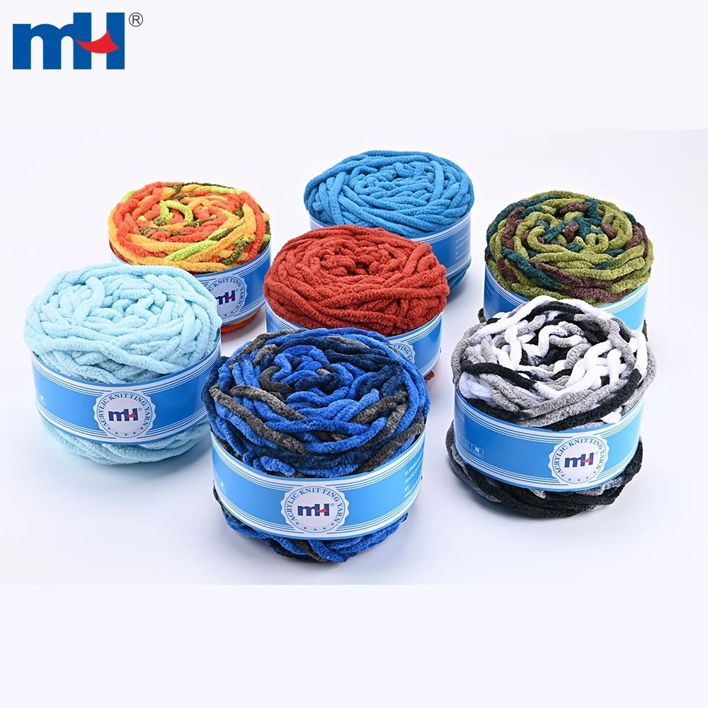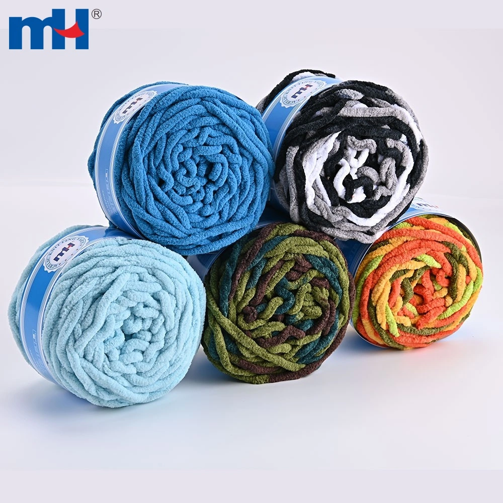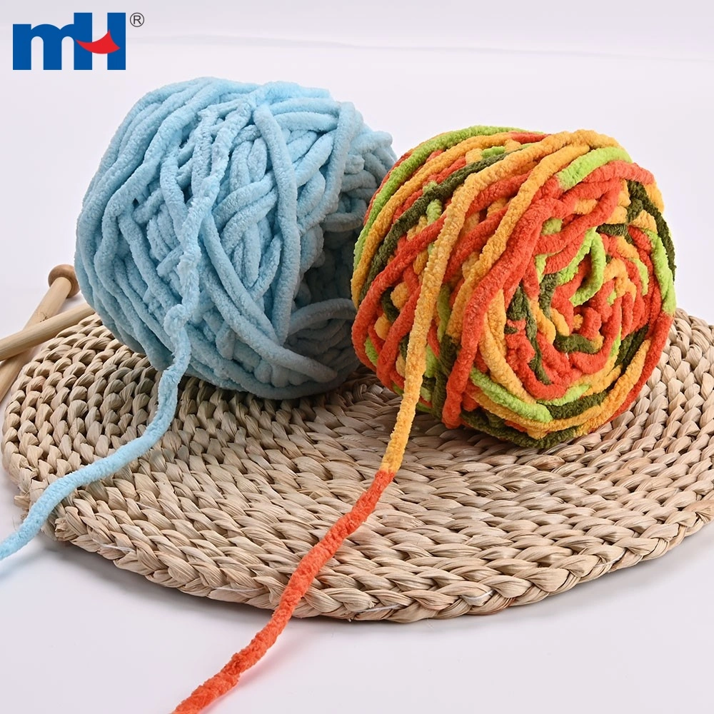 The hairy yarn is made of unstable semi-gloss polyester DTY, which is naturally fluffy and curved after being twisted to chenille yarn, has cotton like soft hand-feel and warmth.