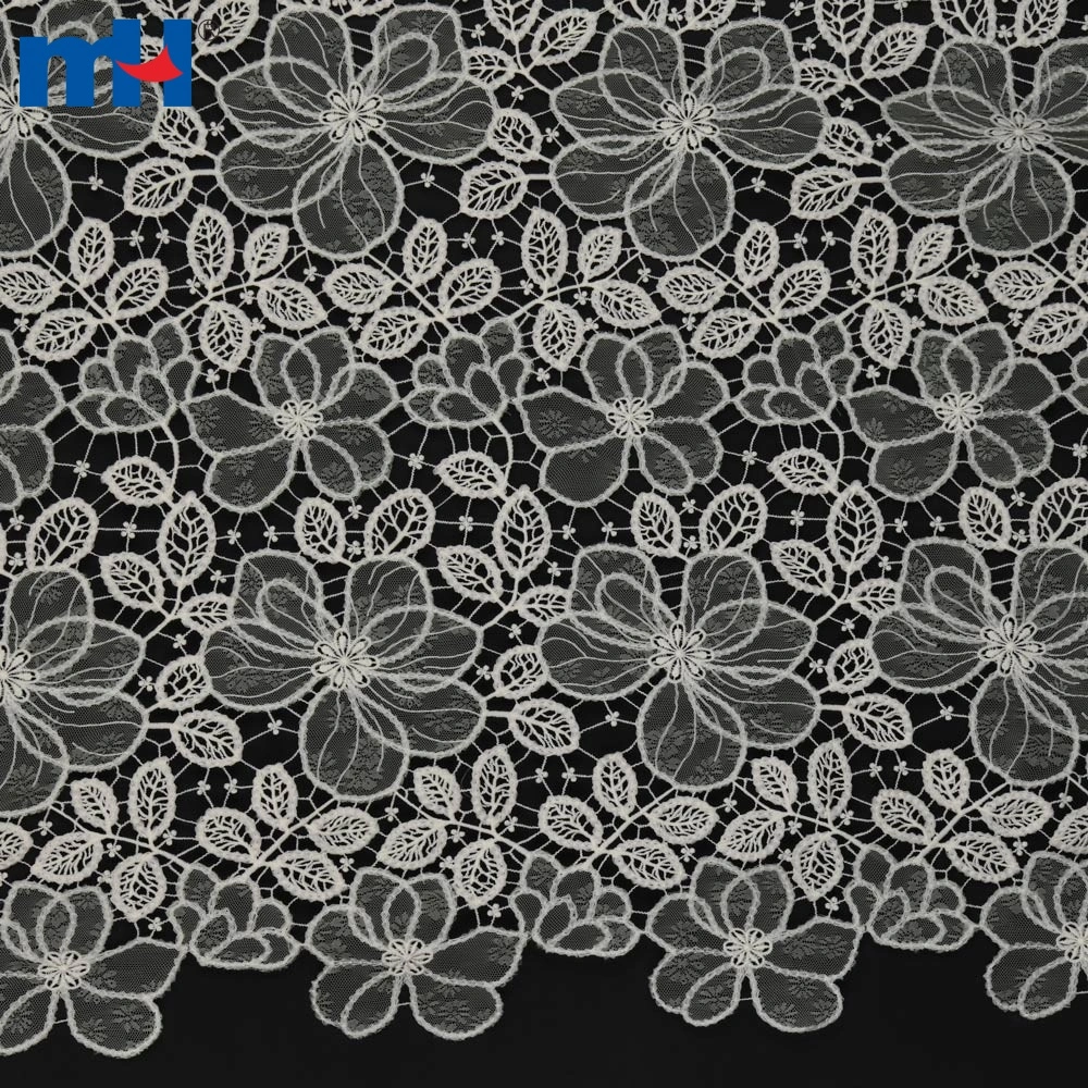 The guipure lace adds a touch of elegance and sophistication to the fabric, making it suitable for various applications like clothing, accessories, and home decor.