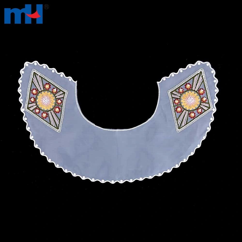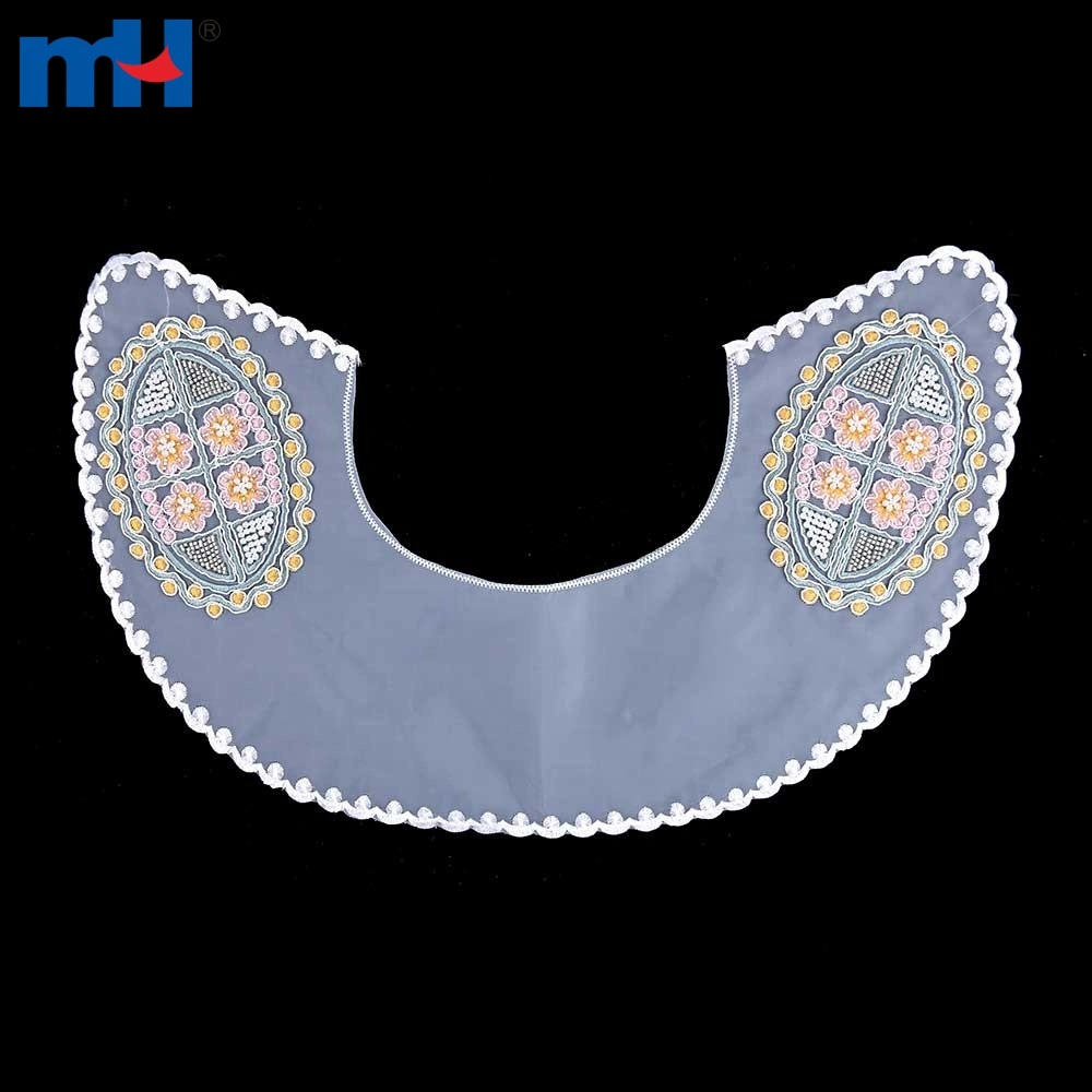 Crafted from soft and comfortable polyester, this white embroidered collar offers versatility in pairing with a wide range of apparel.