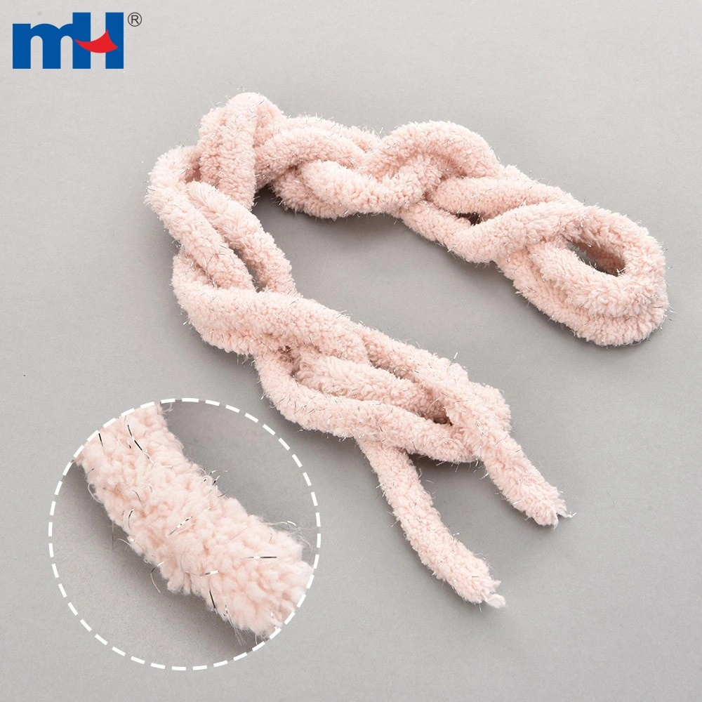 The core filling yarn is covered with woven nets that have a variety of styles, as the net can be made of AB yarn, section dyed yarn, feather yarn and any other fancy yarn.