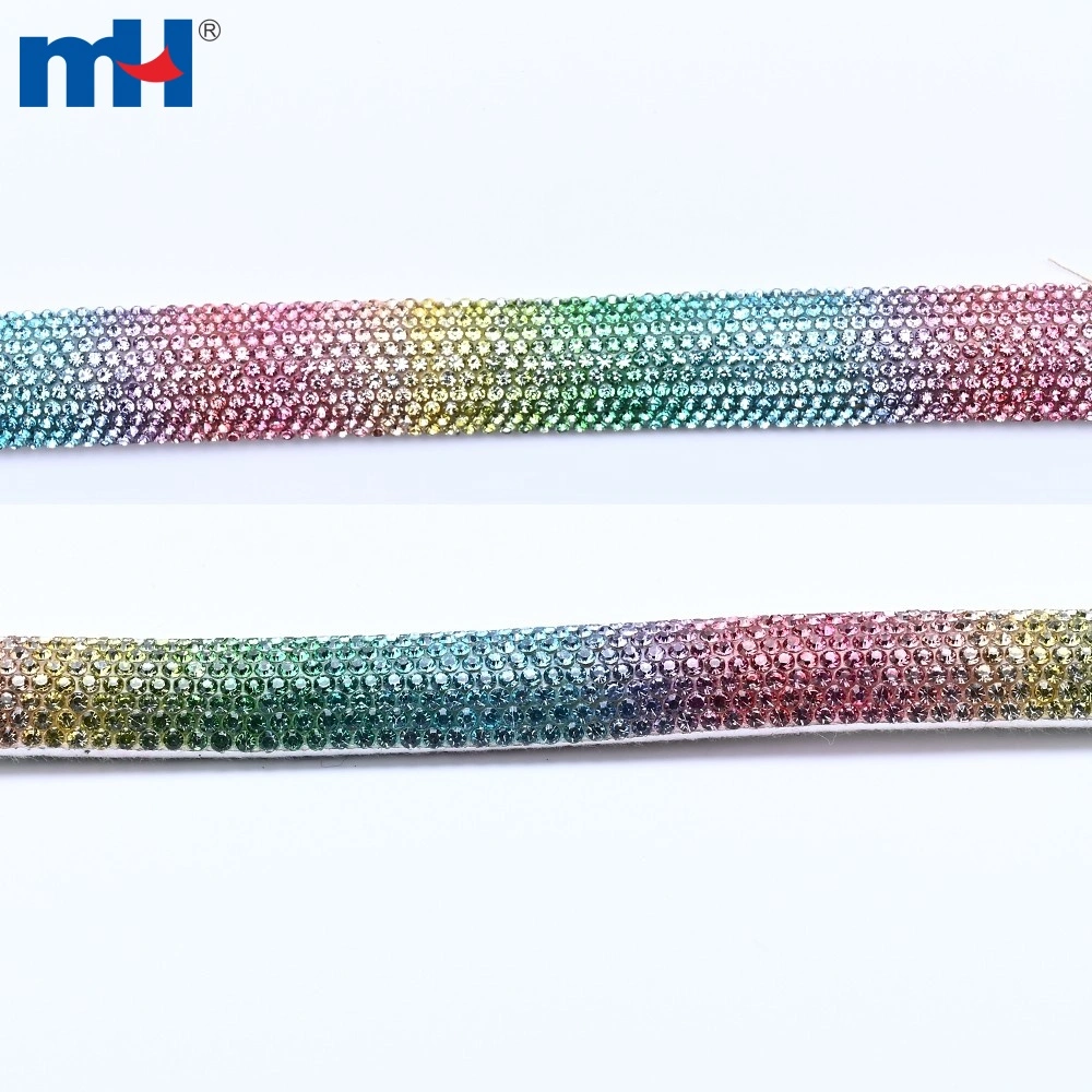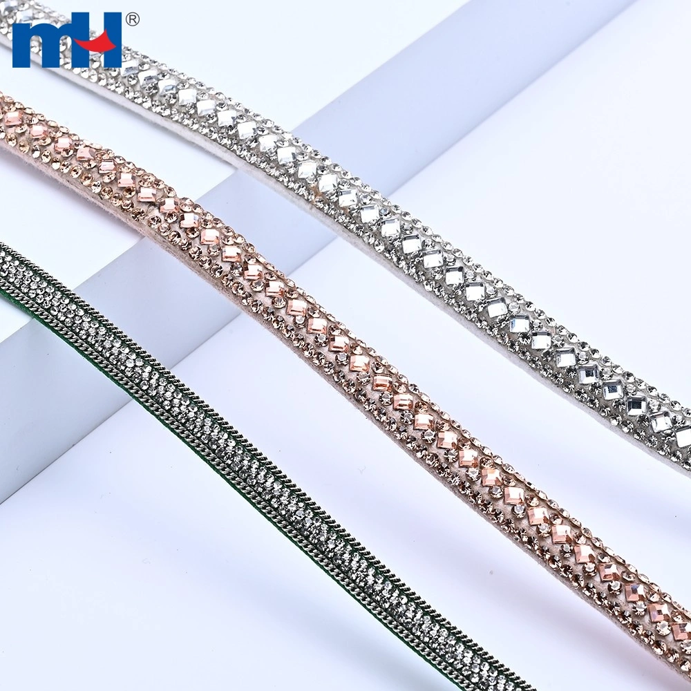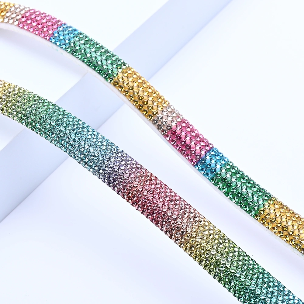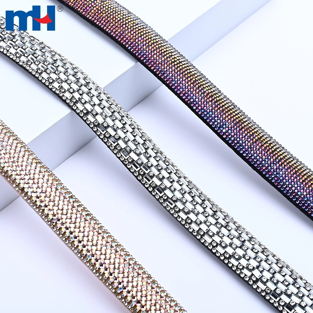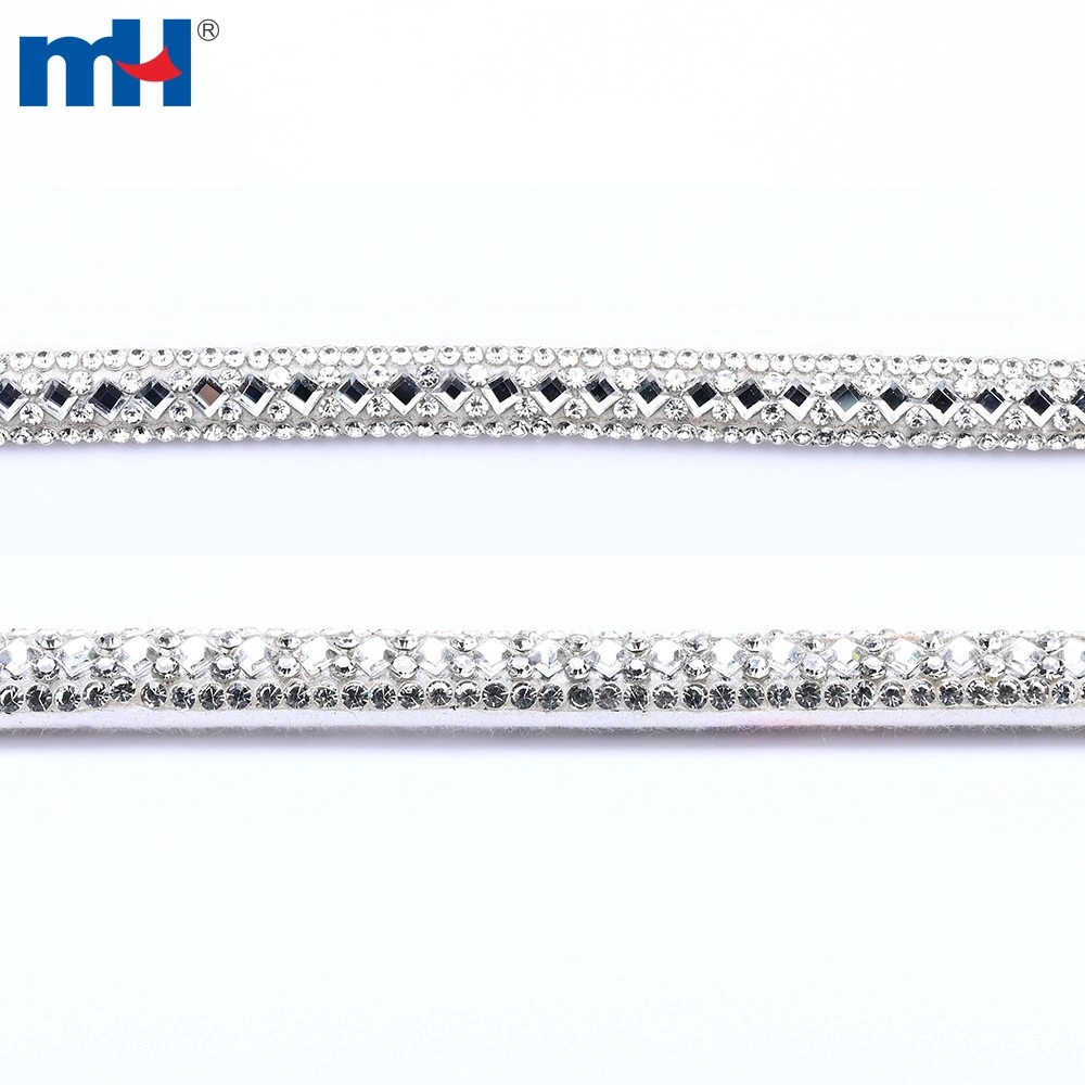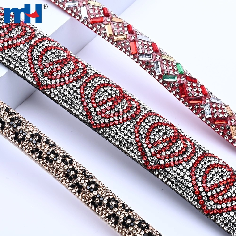 The front side is fully decorated with sparkling rhinestones, while the soft fabric backing ensures a lightweight and comfortable wearing experience.