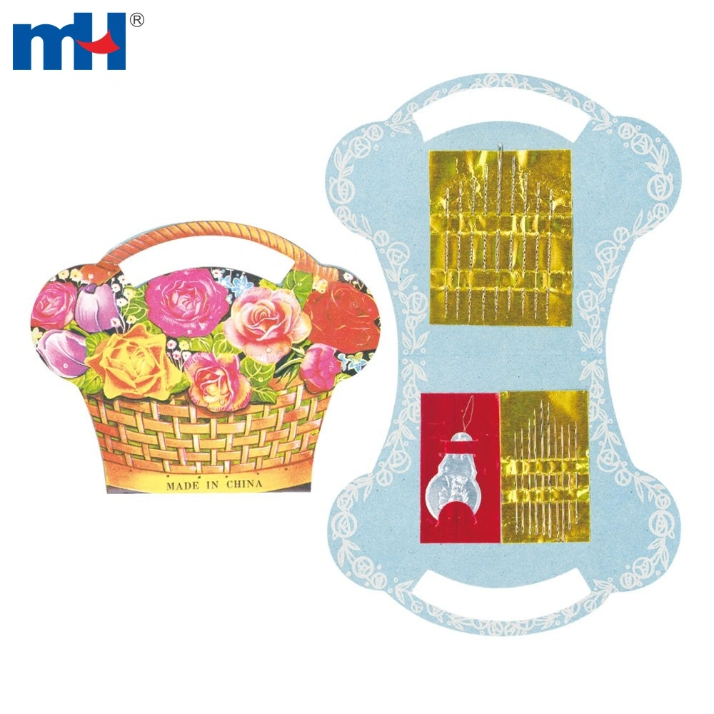 20 Pieces vintage needle and a needle threader pack in the shape of a flower basket.