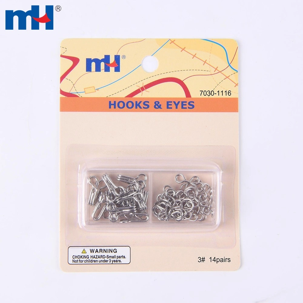 Application: Specially designed closures to hold finished edges together. Made of nickel-plated steel, hooks and eyes typically lay flat, provide a secure hold and are out of sight on your garments.