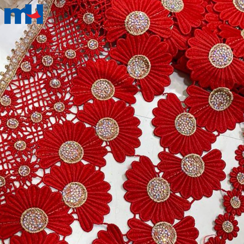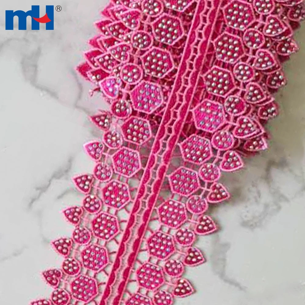 Polyester Chemical Lace with Hot Fix Rhinestone Designs