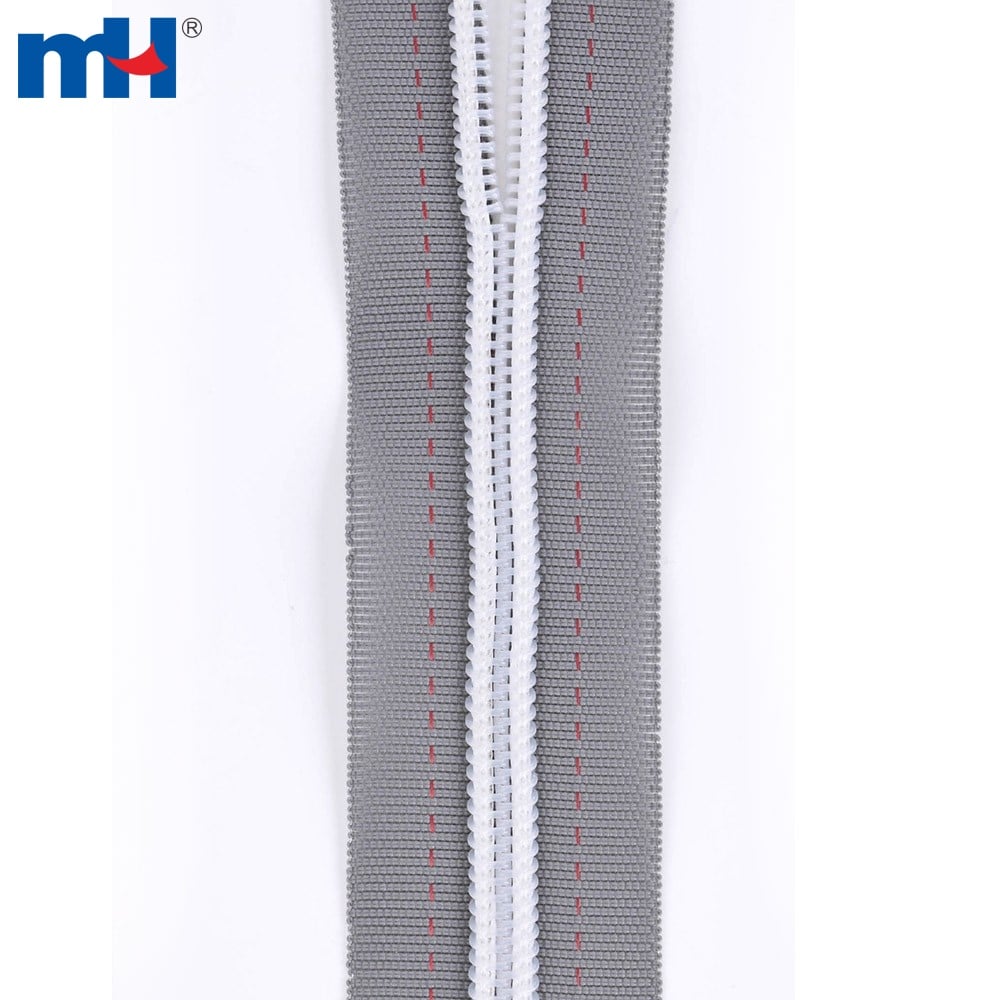 Made from specially woven polyester hot-melt yarn, this zipper tape is made of new type of functional textile material with a low melting point, thermoplasticity, and self-adhesiveness. When heated to 110'℃, the hot-melt yarn softens and melts into an adhesive.viscous liquid, which solidifies again upon cooling.