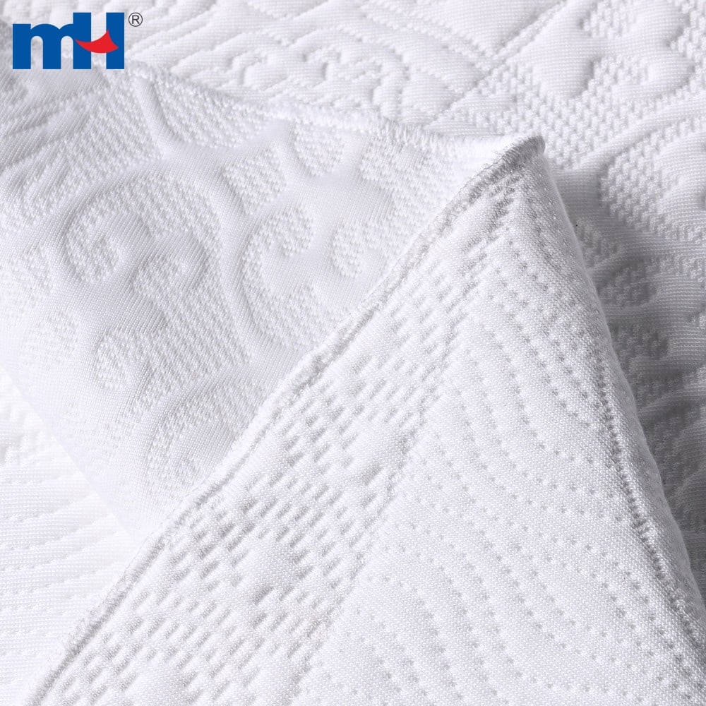 This double-sided jacquard quilted mattress fabric is made of 100% polyester, designed for high-quality mattress production.