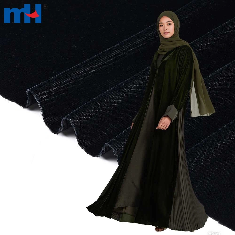 MH offering wholesale 100% polyester Korean micro velvet (5000 and 9000 series). This fabric is engineered for its superior drape, skin-friendly softness, and warmth, making it the optimal choice for high-quality Middle Eastern Abaya garments, luxurious dresses, and home textiles. We support bulk customization and global logistics.