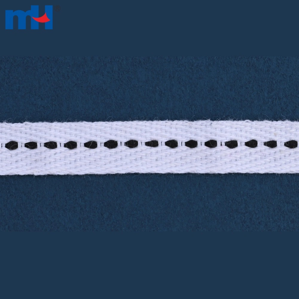 Metallic cotton webbing tape is a flat, woven strip made primarily from cotton fibers, with metallic threads (often made of polyester or metallic-coated yarns) integrated into the weave. The metallic threads add a shiny, reflective quality to the tape, enhancing its visual appeal, while maintaining the strength and flexibility of traditional cotton webbing.