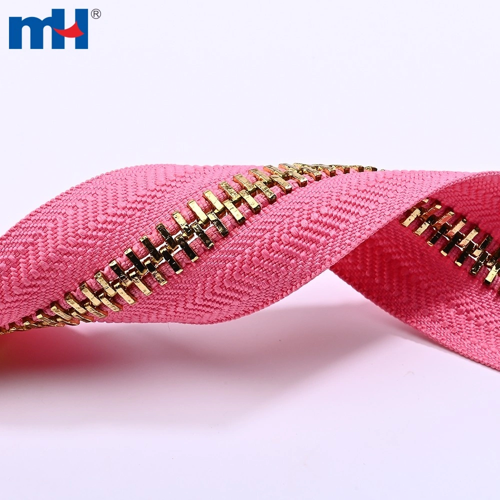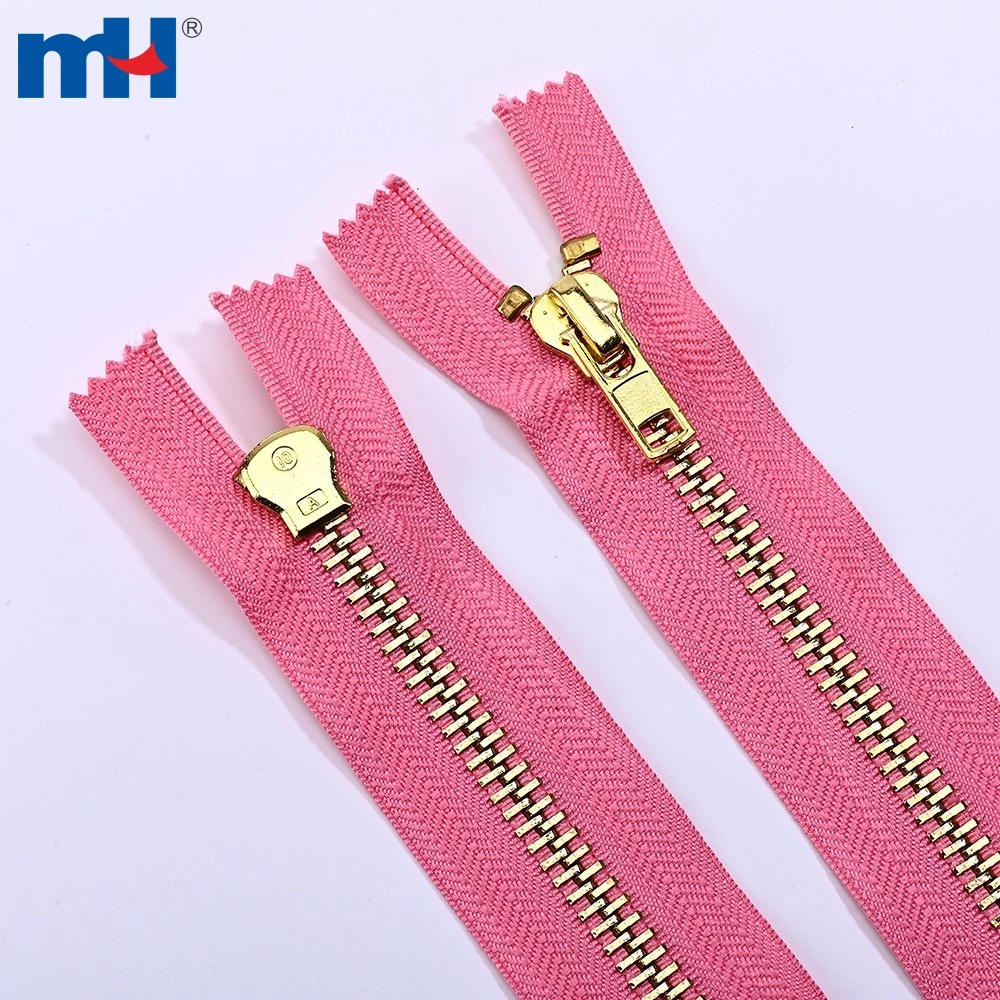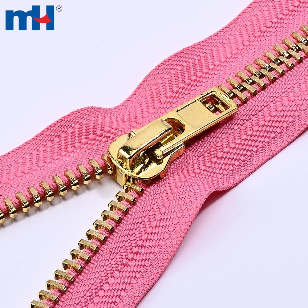 This No.10 metal zipper is made of premium brass with elegant light gold plated teeth, delivering both durability and a refined appearance.