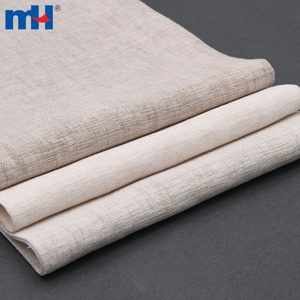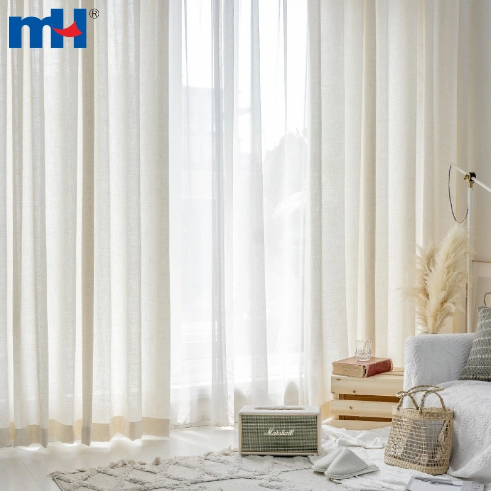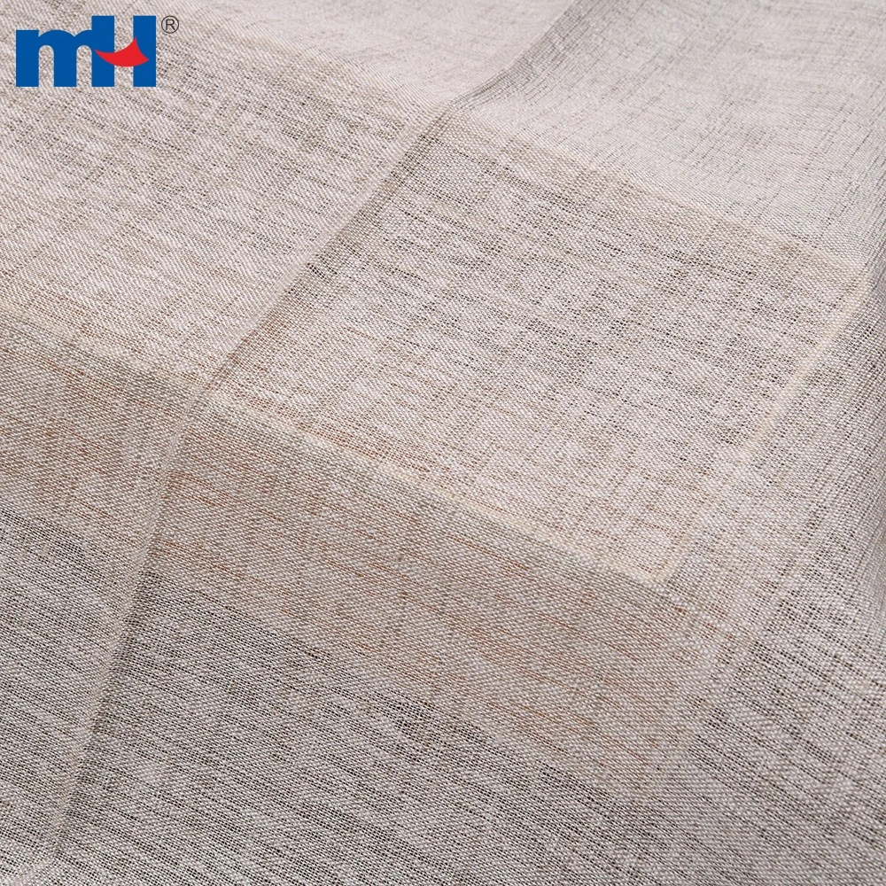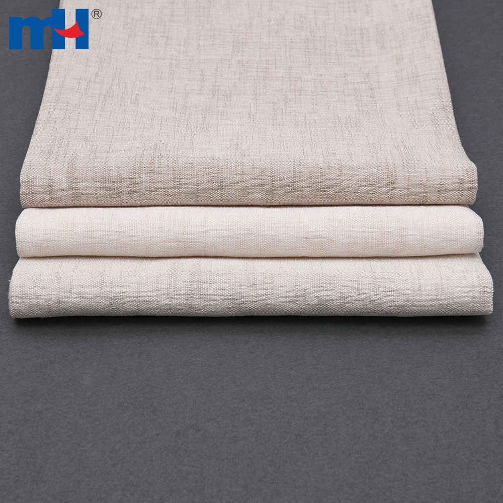 This fabric is a sheer polyester with a slub textured finish on the material, which gives it a linen-like look.