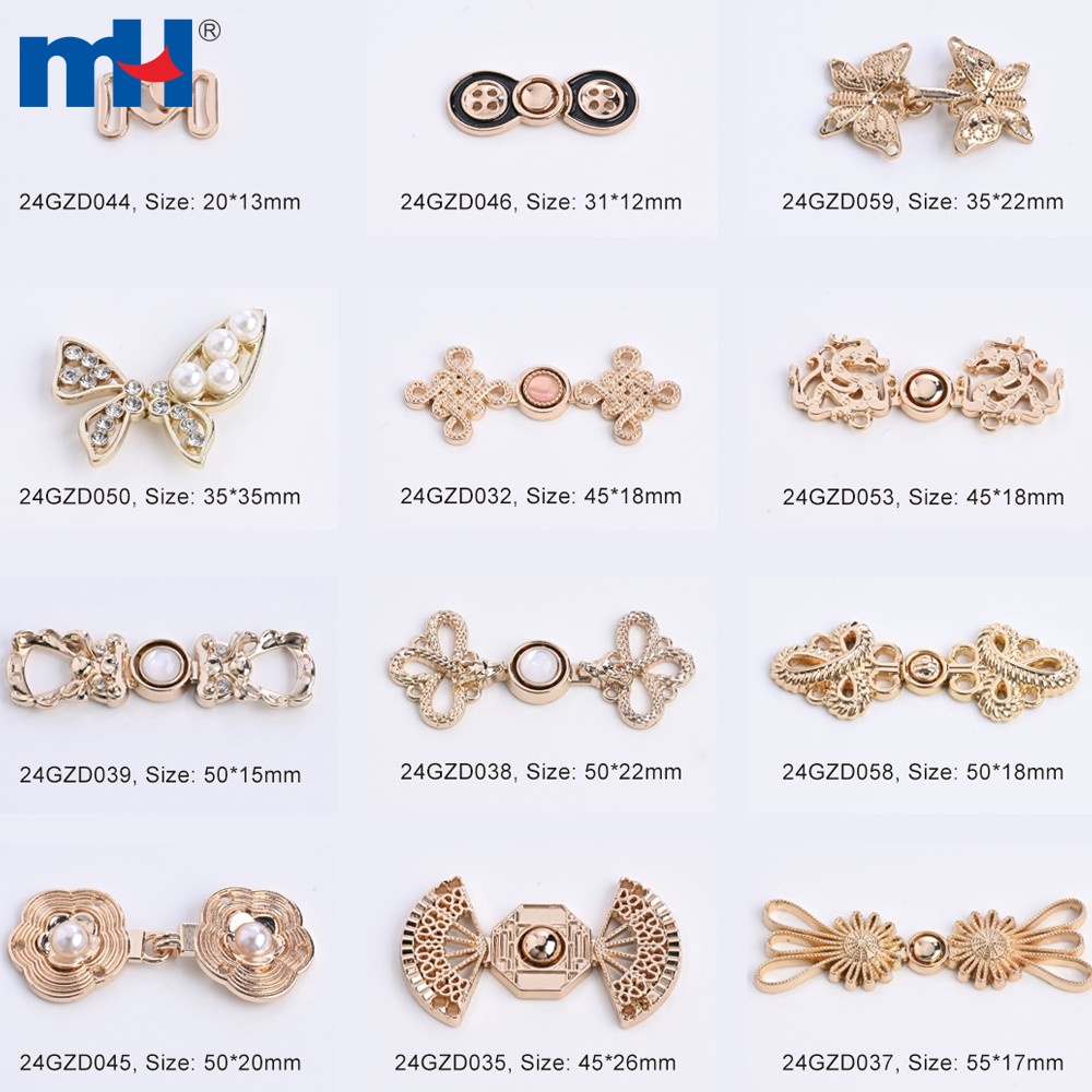 Decorative buttons designed as hook-and-eye closures, suitable for capes, cloaks, sweaters, cardigans, cheongsams, Han Chinese clothing, handbags, and more.