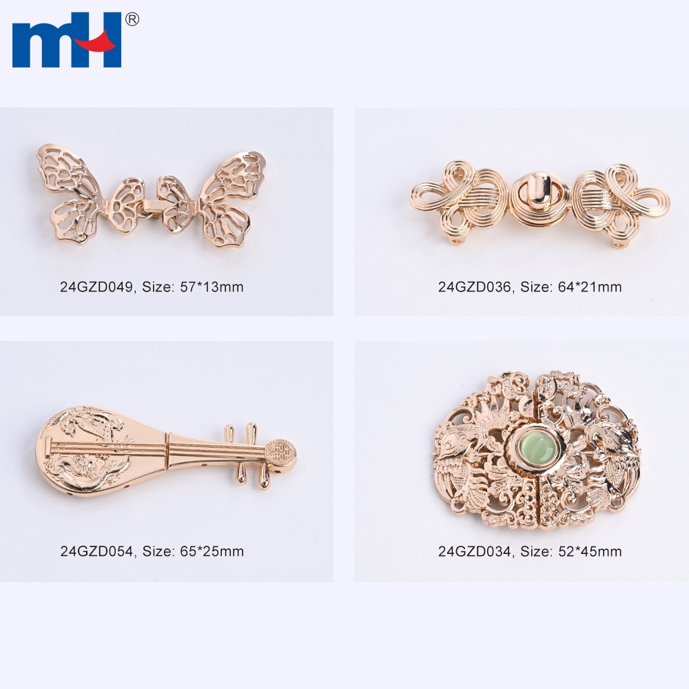 Decorative buttons designed as hook-and-eye closures, suitable for capes, cloaks, sweaters, cardigans, cheongsams, Han Chinese clothing, handbags, and more.