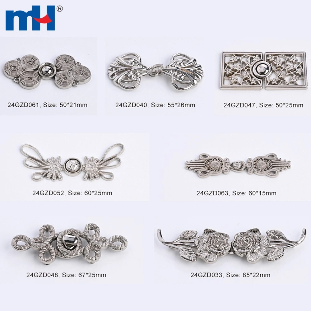 Decorative buttons designed as hook-and-eye closures, suitable for capes, cloaks, sweaters, cardigans, cheongsams, Han Chinese clothing, handbags, and more.