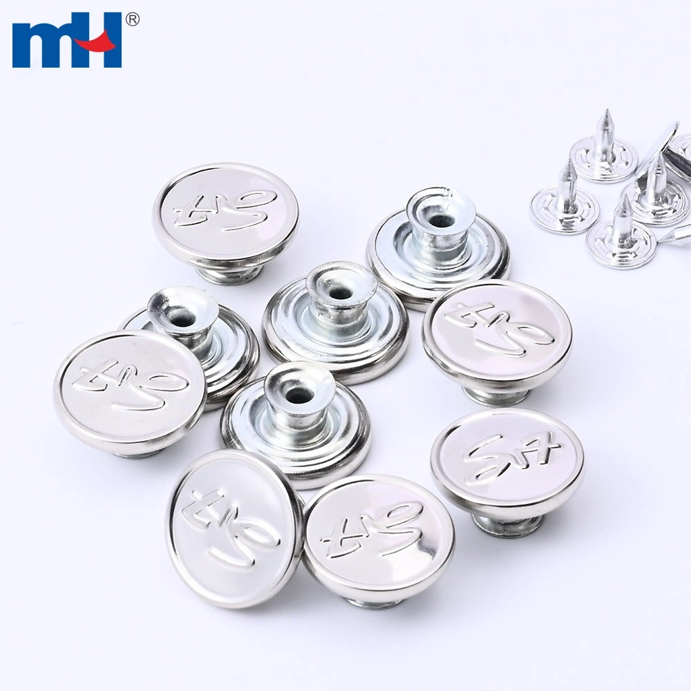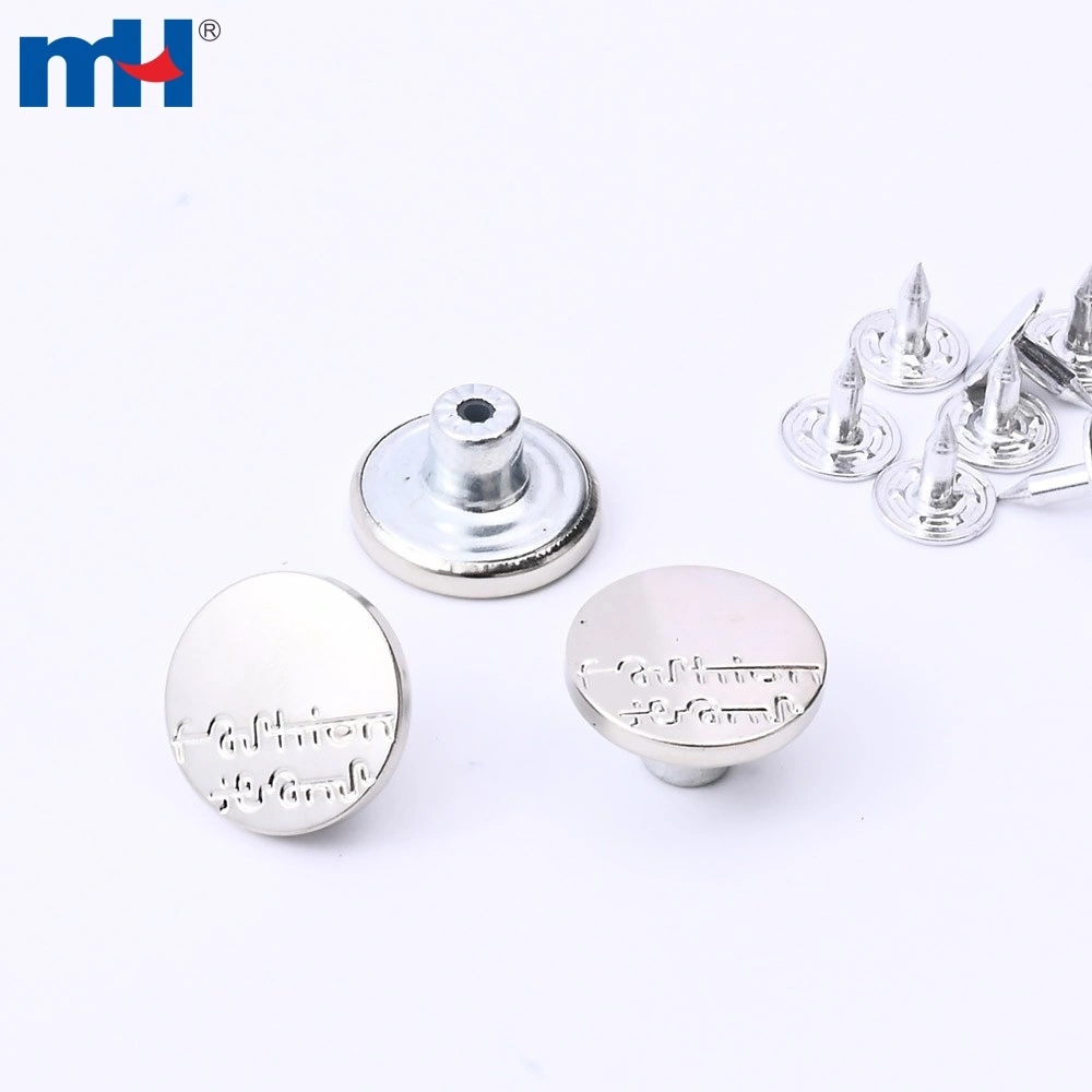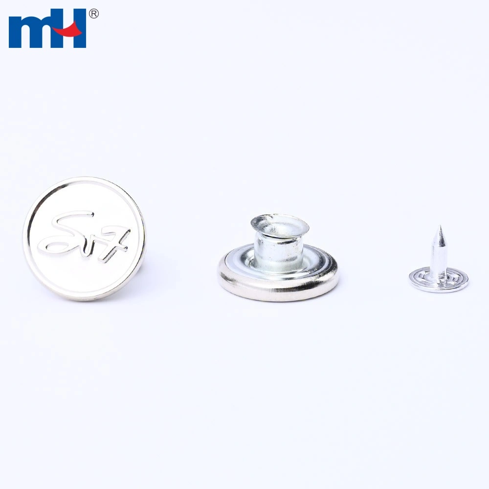17mm Zinc Alloy Embossed Silver Metal Tack Button for Jeans