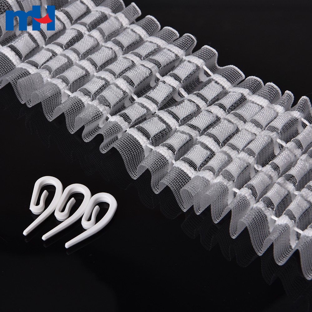Designed for use with pleated curtain tape, ensuring a secure and neat fit.