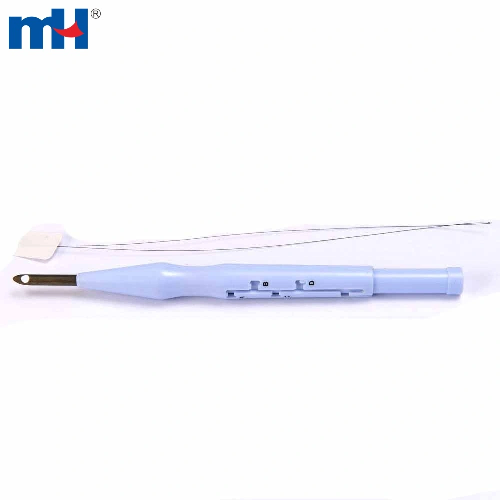 3.Insert the threader through the needle eye from the needle back of the needle tip.