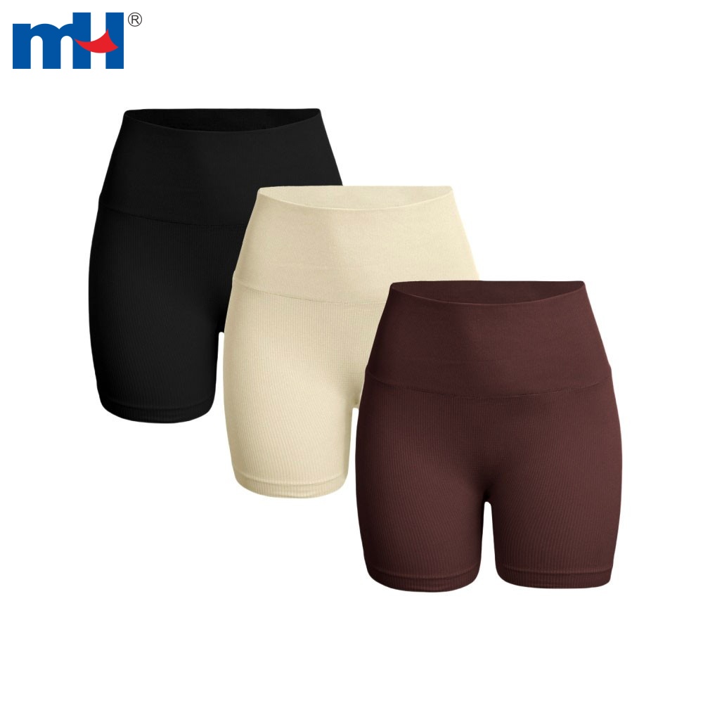 Solid Ribbed Yoga Shorts – High Waist Seamless Activewear