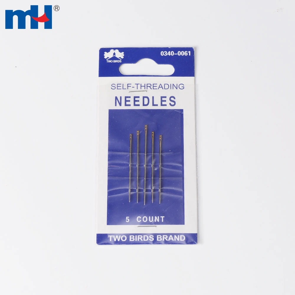 To thread, place the thread in the U-shaped groove at the top of the needle and pull down to guide it through the eye.