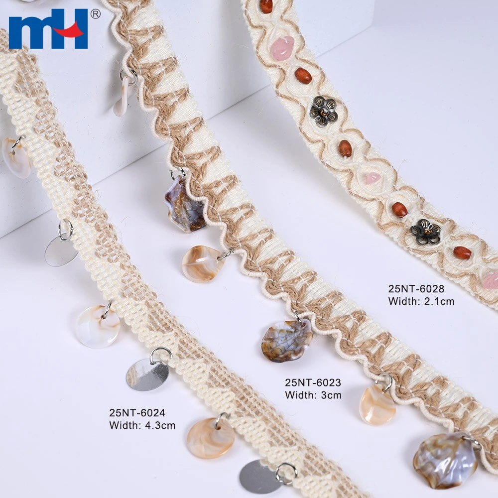 Shell fringe trim is a perfect blend of natural beauty and artistic craftsmanship, making it a popular choice for both functional and decorative purposes.