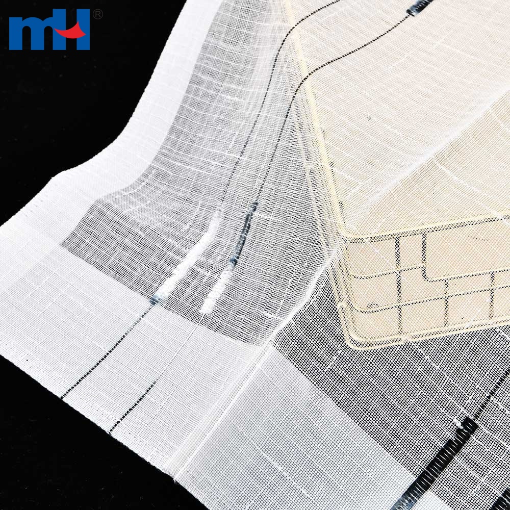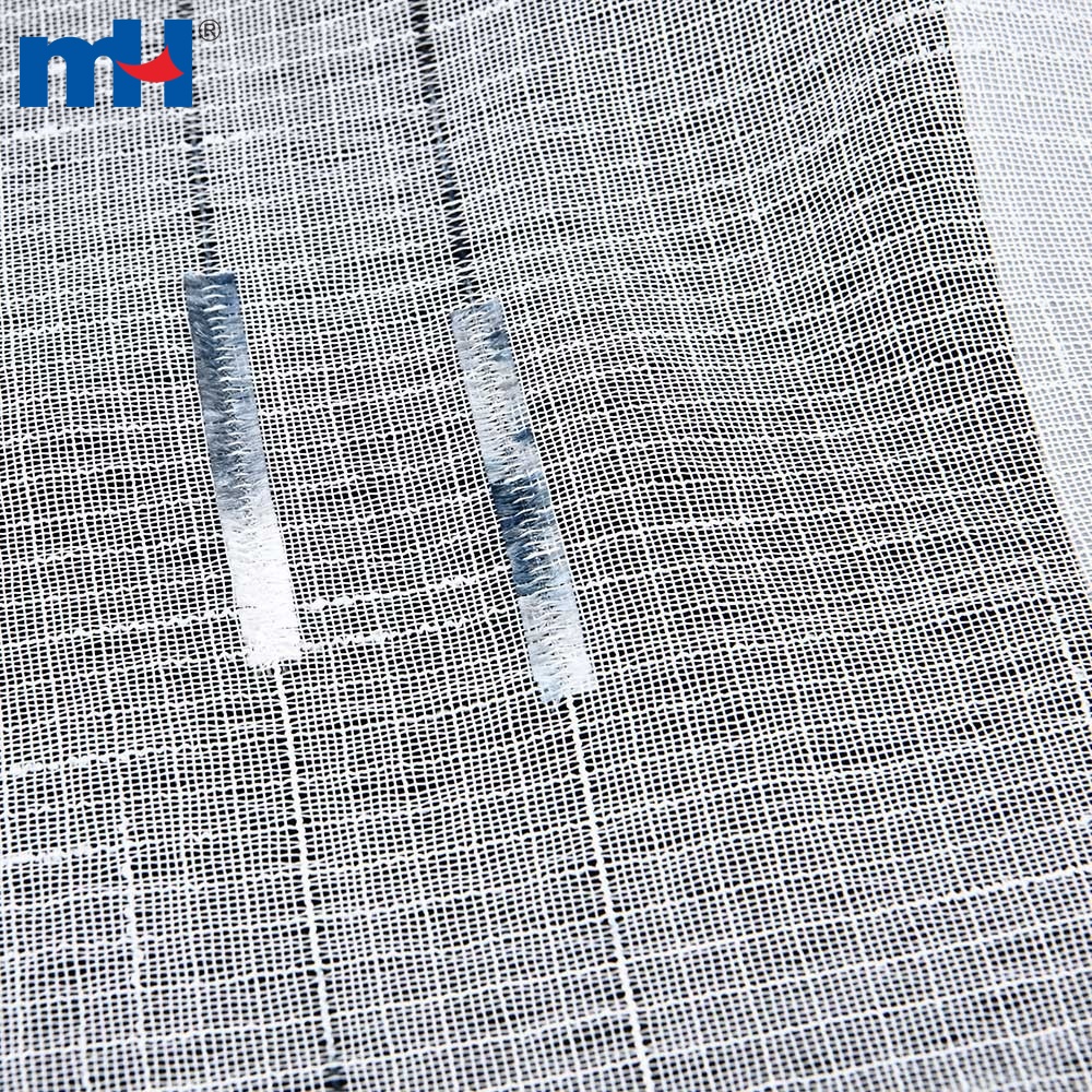 Subtle stripe design on a slub textured linen blend semi-sheer fabric.
