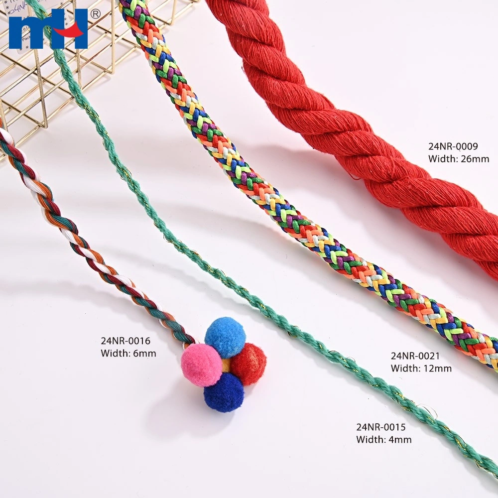 The single-strand rope is made of core yarn such as same-color cotton yarn, graycotton yarn, white cotton yarn, etc., with two or three strands twisted together.