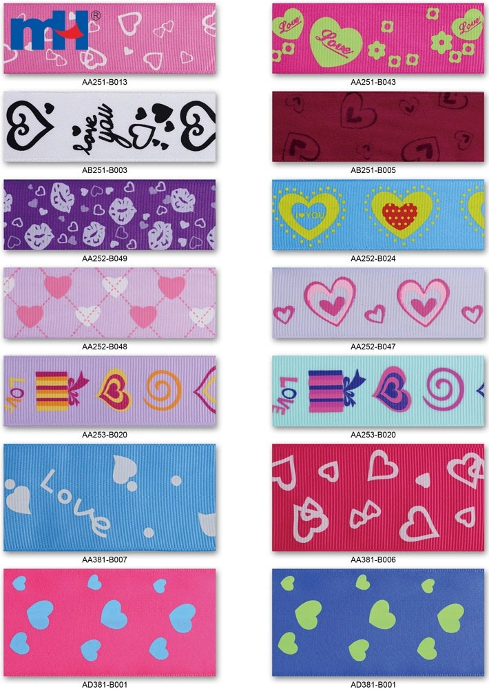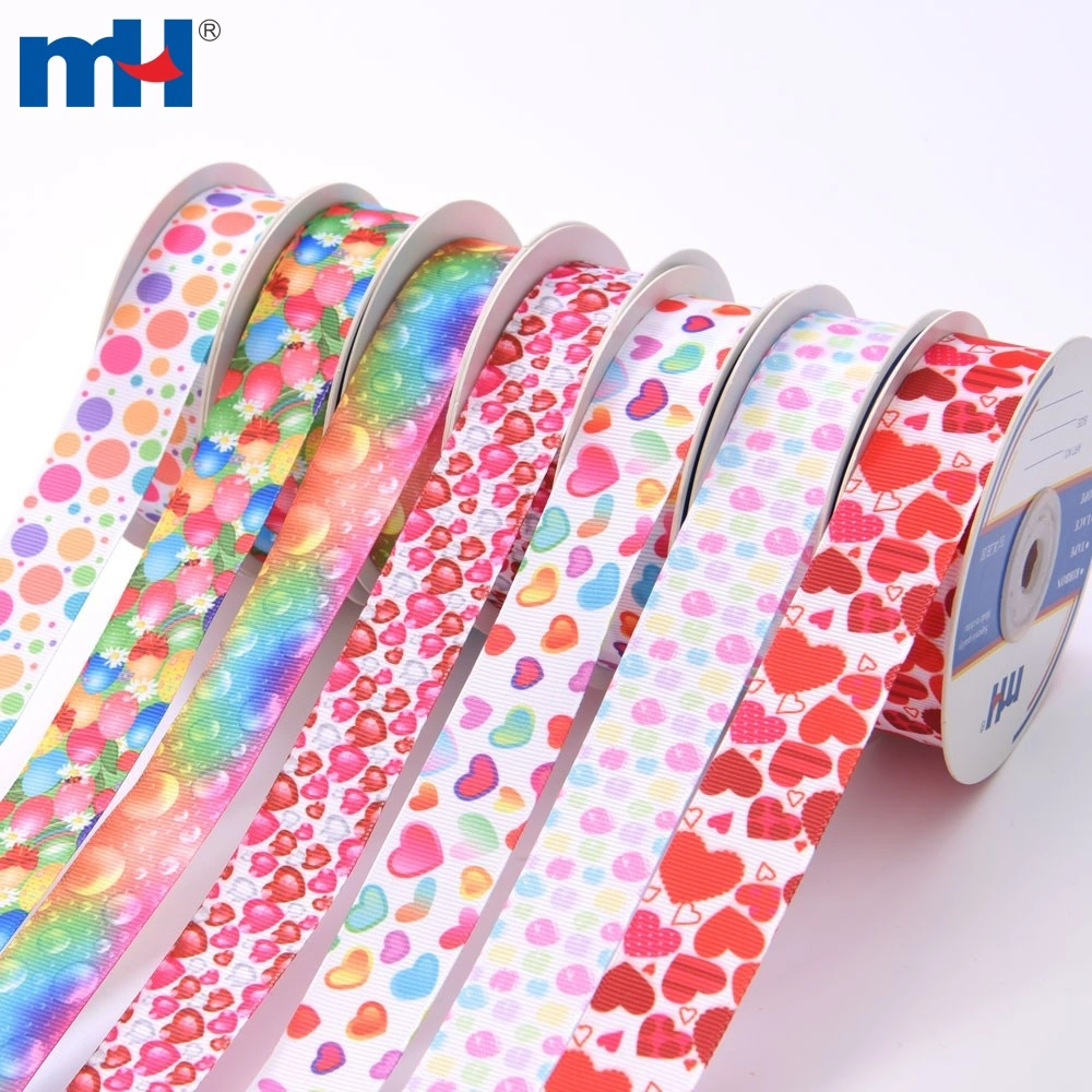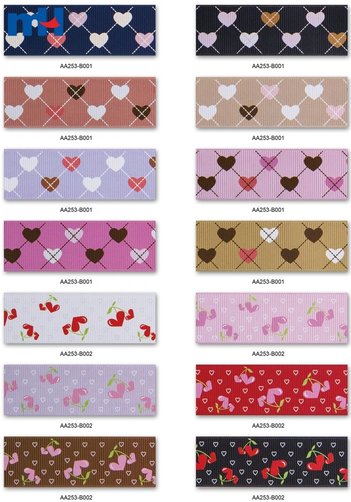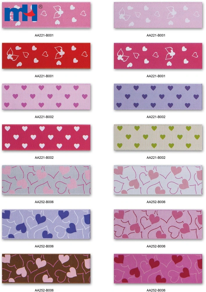 25mm Polyester grosgrain ribbon featuring hearts along the full length of one side.