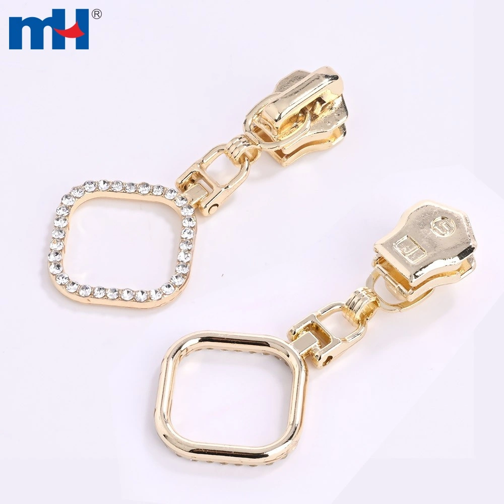 Wholesale Zinc Alloy Slider with Rhinestones Decorated Puller