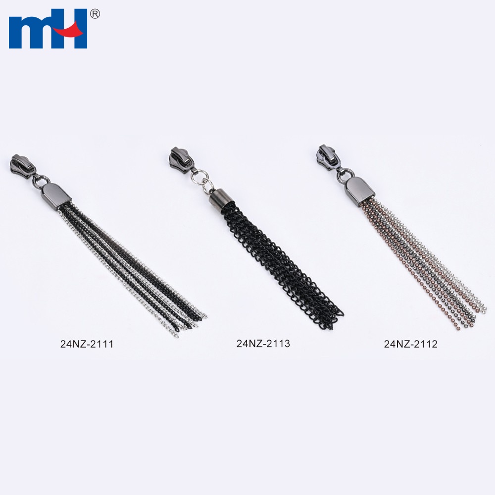 Material: Zinc alloy slider with metal tassel puller, customizable.